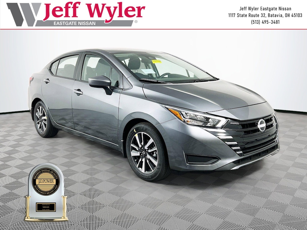 Gun Metallic 2025 Nissan Versa 1.6 SV 1.6L I4 DOHC 16V FWD CVT 32/40 City/Highway MPG Jeff Wyler Eastgate Auto Mall is delighted to offer this fantastic 2025 Nissan Versa 1.6 SV in Gun Metallic. Well equipped with: Trunk Package (Shopping Bag Hooks and Trunk Net), 16" Aluminum Alloy Wheels, 4 Speakers, ABS brakes, Air Conditioning, Alloy wheels, Apple CarPlay/Android Auto, Auto High-beam Headlights, Blind Spot Warning, Brake assist, Bumpers: body-color, Carpeted Floor Mats & Trunk Mat (5-Piece Set), Delay-off headlights, Driver door bin, Driver vanity mirror, Dual front impact airbags, Dual front side impact airbags, Electronic Stability Control, Front anti-roll bar, Front Bucket Seats, Front Center Armrest, Front reading lights, Front wheel independent suspension, Fully automatic headlights, Heated door mirrors, Illuminated entry, Knee airbag, Low tire pressure warning, Occupant sensing airbag, Outside temperature display, Overhead airbag, Panic alarm, Passenger door bin, Passenger vanity mirror, Power door mirrors, Power steering, Power windows, Radio data system, Radio: AM/FM Audio System, Rear Parking Sensors, Rear side impact airbag, Rear window defroster, Remote keyless entry, Speed control, Splash Guards, Split folding rear seat, Steering wheel mounted audio controls, Tachometer, Telescoping steering wheel, Tilt steering wheel, Traction control, Trip computer, Upgraded Cloth Seat Trim, and Variably intermittent wipers. 32/40 City/Highway MPG Price includes: $750 - Nissan MY25 Versa Bonus Cash (All Markets) - December. Exp. 01/05/2026