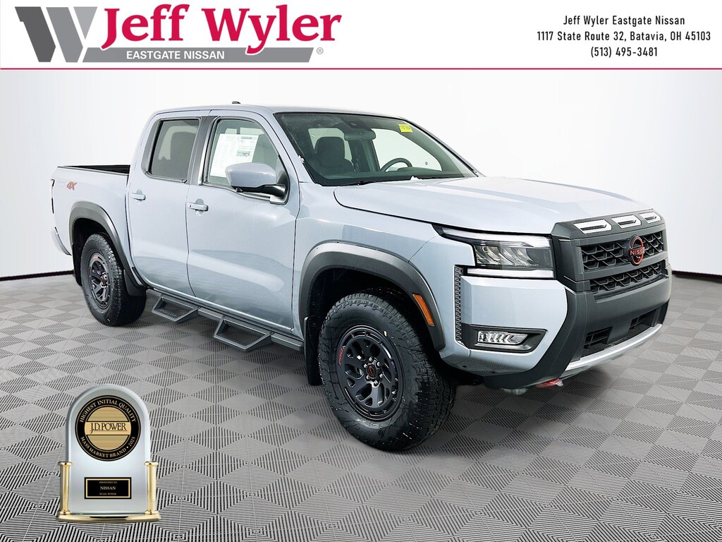 Priced below KBB Fair Purchase Price! Boulder Gray Pearl 2026 Nissan Frontier PRO-4X 3.8L DI DOHC 24V V6 4WD 9-Speed Automatic with Overdrive 18/22 City/Highway MPG Jeff Wyler Eastgate Auto Mall is very proud to offer this wonderful-looking 2026 Nissan Frontier PRO-4X in Boulder Gray Pearl. Well equipped with: PRO-4X Convenience Package, 17" Painted Alloy Wheels, 3.692 Axle Ratio, 4-Wheel Disc Brakes, 6 Speakers, ABS brakes, Air Conditioning, Alloy wheels, AM/FM radio: SiriusXM, Anti-whiplash front head restraints, Auto High-beam Headlights, Automatic temperature control, Blind Spot Warning, Brake assist, Bumpers: body-color, Delay-off headlights, Driver door bin, Driver vanity mirror, Dual front impact airbags, Dual front side impact airbags, Electronic Stability Control, Electronic Tailgate Lock, Emergency communication system, Essentials Kit, Front anti-roll bar, Front Bucket Seats, Front Center Armrest, Front dual zone A/C, Front fog lights, Front reading lights, Front wheel independent suspension, Fully automatic headlights, Heated Front Bucket Seats, Heated front seats, Heated steering wheel, Illuminated entry, Knee airbag, Leather steering wheel, Low tire pressure warning, Mud Flaps, Occupant sensing airbag, Off-Road Style Step Rails, Overhead airbag, Overhead console, Panic alarm, Passenger door bin, Passenger vanity mirror, Power door mirrors, Power driver seat, Power passenger seat, Power steering, Power windows, Premium Paint, PRO Embroidered Premium Cloth Seat Trim, Radio data system, Radio: SXM/AM/FM/AUX/USB Audio System, Rear anti-roll bar, Rear seat center armrest, Rear side impact airbag, Rear step bumper, Remote keyless entry, Security system, Speed control, Speed-sensing steering, Split folding rear seat, Steering wheel mounted audio controls, Tachometer, Telescoping steering wheel, Tilt steering wheel, Traction control, Trip computer, Variably intermittent wipers, Voltmeter, and Wireless Apple CarPlay/Wireless Android Auto. Price includes: $1000 - Nissan MWR MY26 Frontier (Pro4X and SV) Bonus Cash - March. Exp. 03/31/2026 $2500 - Nissan Customer Cash. Exp. 03/31/2026