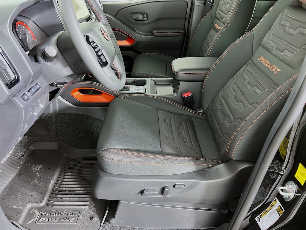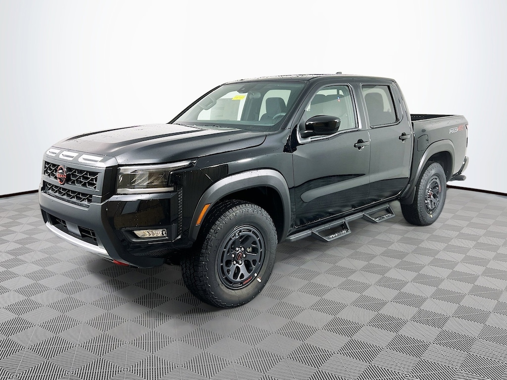 Super Black 2026 Nissan Frontier PRO-4X 3.8L DI DOHC 24V V6 4WD 9-Speed Automatic with Overdrive 18/22 City/Highway MPG Jeff Wyler Eastgate Auto Mall is pleased to offer this stunning 2026 Nissan Frontier PRO-4X in Super Black. Well equipped with: Tow Package, 17" Painted Alloy Wheels, 3.692 Axle Ratio, 4-Wheel Disc Brakes, 6 Speakers, ABS brakes, Air Conditioning, Alloy wheels, AM/FM radio: SiriusXM, Anti-whiplash front head restraints, Auto High-beam Headlights, Automatic temperature control, Blind Spot Warning, Brake assist, Bumpers: body-color, Delay-off headlights, Driver door bin, Driver vanity mirror, Drop-In Bed Liner & Bumper Step, Dual front impact airbags, Dual front side impact airbags, Electronic Stability Control, Emergency communication system, Essentials Kit, Front anti-roll bar, Front Bucket Seats, Front Center Armrest, Front dual zone A/C, Front fog lights, Front reading lights, Front wheel independent suspension, Fully automatic headlights, Heated Front Bucket Seats, Heated front seats, Heated steering wheel, Illuminated entry, Knee airbag, Leather steering wheel, Low tire pressure warning, Occupant sensing airbag, Off-Road Style Step Rails, Overhead airbag, Overhead console, Panic alarm, Passenger door bin, Passenger vanity mirror, Power door mirrors, Power driver seat, Power passenger seat, Power steering, Power windows, PRO Embroidered Premium Cloth Seat Trim, Radio data system, Radio: SXM/AM/FM/AUX/USB Audio System, Rear anti-roll bar, Rear seat center armrest, Rear side impact airbag, Rear step bumper, Remote keyless entry, Security system, Speed control, Speed-sensing steering, Split folding rear seat, Steering wheel mounted audio controls, Tachometer, Telescoping steering wheel, Tilt steering wheel, Traction control, Trip computer, Variably intermittent wipers, Voltmeter, and Wireless Apple CarPlay/Wireless Android Auto. Price includes: $2500 - Nissan Customer Cash. Exp. 01/05/2026