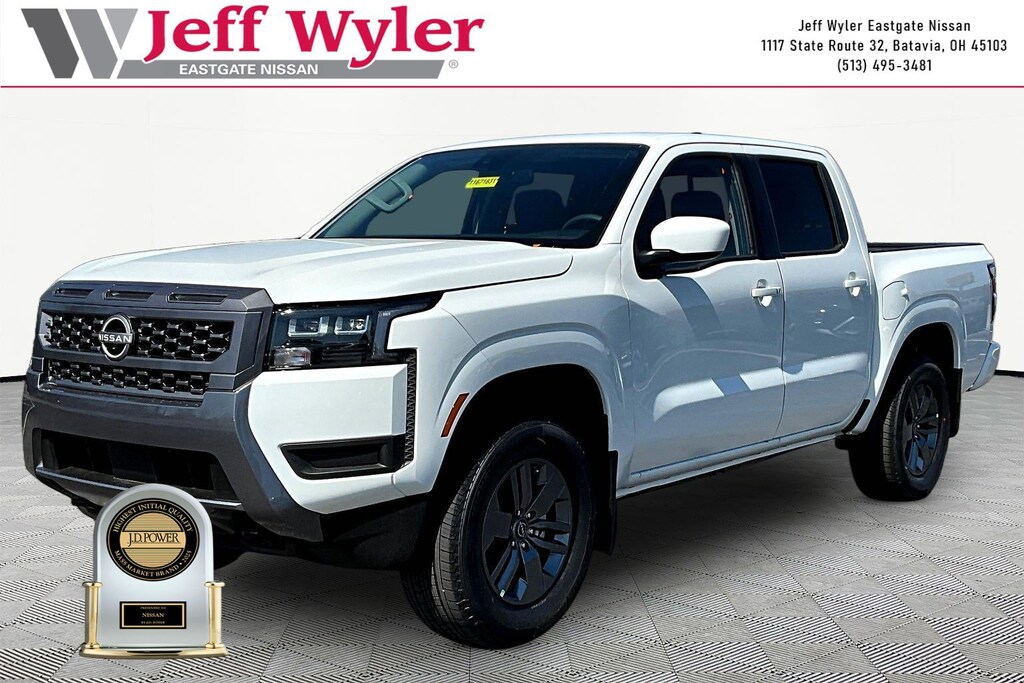 Priced below KBB Fair Purchase Price! Glacier White 2026 Nissan Frontier SV V6 4WD 9-Speed Automatic with Overdrive 18/23 City/Highway MPG Jeff Wyler Eastgate Auto Mall is pumped up to offer this superb-looking 2026 Nissan Frontier SV in Glacier White. Well equipped with: SV Convenience Package (120V Power Outlet in Bed, 120V Power Outlet in Rear Center Console, Bed Under-Rail Lighting, Heated Front Seats, Heated Leather Steering Wheel, Heated Outside Mirrors, HVAC Dual-Zone Front Auto a/C, I-Key with Request Switches on O/S Handles, Locking Glove Box, Remote Engine Starter, Spray-in Bedliner, Tow/Haul Mode Switch, Trailer Hitch with Wiring Harness, and Utili-Track System), 17" Alloy Wheels, 3.692 Axle Ratio, 4-Wheel Disc Brakes, 6 Speakers, ABS brakes, Air Conditioning, Alloy wheels, AM/FM radio: SiriusXM, Anti-whiplash front head restraints, Auto High-beam Headlights, Blind Spot Warning, Brake assist, Bumpers: body-color, Carpeted Floor Mats, Delay-off headlights, Driver door bin, Driver vanity mirror, Dual front impact airbags, Dual front side impact airbags, Electronic Stability Control, Electronic Tailgate Lock, Emergency communication system, Front anti-roll bar, Front Bucket Seats, Front Center Armrest, Front reading lights, Front wheel independent suspension, Fully automatic headlights, Illuminated entry, Knee airbag, Low tire pressure warning, Occupant sensing airbag, Overhead airbag, Overhead console, Panic alarm, Passenger door bin, Passenger vanity mirror, Power door mirrors, Power driver seat, Power steering, Power windows, Premium Cloth Seat Trim, Radio data system, Radio: SiriusXM/AM/FM/Auxiliary/USB Audio System, Rear anti-roll bar, Rear seat center armrest, Rear side impact airbag, Rear step bumper, Remote keyless entry, Security system, Speed control, Speed-sensing steering, Splash Guards, Split folding rear seat, Steering wheel mounted audio controls, Tachometer, Telescoping steering wheel, Tilt steering wheel, Traction control, Trip computer, Variably intermittent wipers, Voltmeter, and Wireless Apple CarPlay/Wireless Android Auto. Price includes: $3500 - Nissan Customer Cash. Exp. 05/04/2026