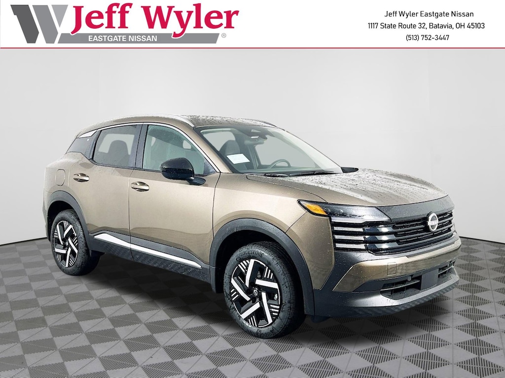 Canyon Bronze Metallic 2026 Nissan Kicks SV 2.0L DOHC FWD CVT with Xtronic 28/35 City/Highway MPG Jeff Wyler Eastgate Auto Mall is pumped up to offer this fantastic-looking 2026 Nissan Kicks SV in Canyon Bronze Metallic. Well equipped with: 4 Speakers, 4-Wheel Disc Brakes, ABS brakes, Air Conditioning, AM/FM radio, Auto High-beam Headlights, Automatic temperature control, Blind Spot Warning, Brake assist, Bumpers: body-color, Carpeted Floor Mats & Underfloor Protector, Cloth Seat Trim, Driver door bin, Driver vanity mirror, Dual front impact airbags, Dual front side impact airbags, Electronic Stability Control, Emergency communication system, Exterior Parking Camera Rear, Front anti-roll bar, Front Bucket Seats, Front Center Armrest, Front reading lights, Front wheel independent suspension, Fully automatic headlights, Illuminated entry, Knee airbag, Low tire pressure warning, NissanConnect featuring Apple CarPlay and Android Auto, Occupant sensing airbag, Outside temperature display, Overhead airbag, Panic alarm, Passenger door bin, Passenger vanity mirror, Power door mirrors, Power steering, Power windows, Radio data system, Radio: AM/FM/SiriusXM Audio System, Rear anti-roll bar, Rear reading lights, Rear side impact airbag, Rear window defroster, Rear window wiper, Remote keyless entry, Security system, Speed control, Speed-sensing steering, Splash Guards, Split folding rear seat, Spoiler, Sport steering wheel, Steering wheel mounted audio controls, Tachometer, Telescoping steering wheel, Tilt steering wheel, Traction control, Trip computer, Variably intermittent wipers, and Wheels: 17" Steel Flex w/Full Covers. 28/35 City/Highway MPG Price includes: $1000 - Nissan Customer Cash. Exp. 12/01/2025 $500 - Nissan MWR MY26 New Kicks Black Friday Bonus Cash - November. Exp. 12/01/2025