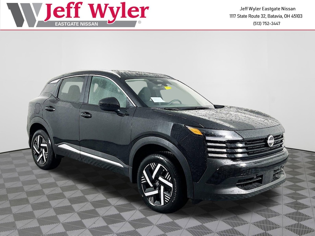 Super Black 2026 Nissan Kicks SV 2.0L DOHC FWD CVT with Xtronic 28/35 City/Highway MPG Jeff Wyler Eastgate Auto Mall is pumped up to offer this stunning 2026 Nissan Kicks SV in Super Black. Well equipped with: 4 Speakers, 4-Wheel Disc Brakes, ABS brakes, Air Conditioning, AM/FM radio, Auto High-beam Headlights, Automatic temperature control, Blind Spot Warning, Brake assist, Bumpers: body-color, Carpeted Floor Mats & Underfloor Protector, Cloth Seat Trim, Driver door bin, Driver vanity mirror, Dual front impact airbags, Dual front side impact airbags, Electronic Stability Control, Emergency communication system, Exterior Parking Camera Rear, Front anti-roll bar, Front Bucket Seats, Front Center Armrest, Front reading lights, Front wheel independent suspension, Fully automatic headlights, Illuminated entry, Knee airbag, Low tire pressure warning, NissanConnect featuring Apple CarPlay and Android Auto, Occupant sensing airbag, Outside temperature display, Overhead airbag, Panic alarm, Passenger door bin, Passenger vanity mirror, Power door mirrors, Power steering, Power windows, Radio data system, Radio: AM/FM/SiriusXM Audio System, Rear anti-roll bar, Rear reading lights, Rear side impact airbag, Rear window defroster, Rear window wiper, Remote keyless entry, Security system, Speed control, Speed-sensing steering, Splash Guards, Split folding rear seat, Spoiler, Sport steering wheel, Steering wheel mounted audio controls, Tachometer, Telescoping steering wheel, Tilt steering wheel, Traction control, Trip computer, Variably intermittent wipers, and Wheels: 17" Steel Flex w/Full Covers. 28/35 City/Highway MPG Price includes: $1000 - Nissan Customer Cash. Exp. 12/01/2025 $500 - Nissan MWR MY26 New Kicks Black Friday Bonus Cash - November. Exp. 12/01/2025