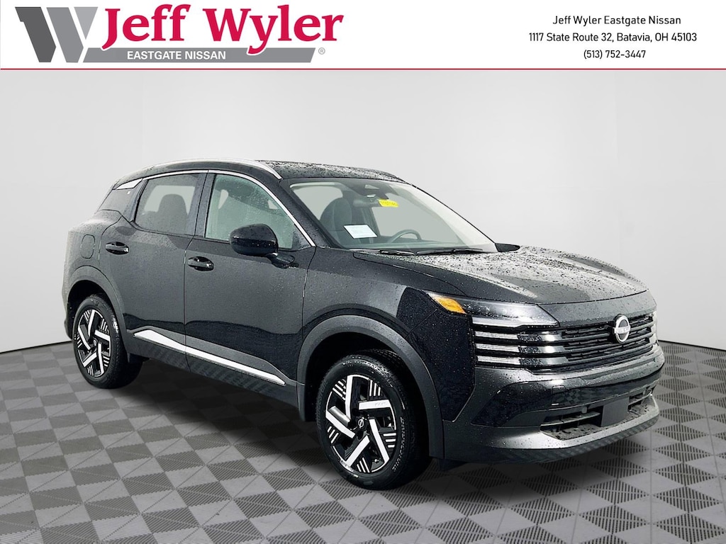 Super Black 2026 Nissan Kicks SV 2.0L DOHC FWD CVT with Xtronic 28/35 City/Highway MPG Jeff Wyler Eastgate Auto Mall is pleased to offer this gorgeous 2026 Nissan Kicks SV in Super Black. Well equipped with: 4 Speakers, 4-Wheel Disc Brakes, ABS brakes, Air Conditioning, AM/FM radio, Auto High-beam Headlights, Automatic temperature control, Blind Spot Warning, Brake assist, Bumpers: body-color, Carpeted Floor Mats & Underfloor Protector, Cloth Seat Trim, Driver door bin, Driver vanity mirror, Dual front impact airbags, Dual front side impact airbags, Electronic Stability Control, Emergency communication system, Exterior Parking Camera Rear, Front anti-roll bar, Front Bucket Seats, Front Center Armrest, Front reading lights, Front wheel independent suspension, Fully automatic headlights, Illuminated entry, Knee airbag, Low tire pressure warning, NissanConnect featuring Apple CarPlay and Android Auto, Occupant sensing airbag, Outside temperature display, Overhead airbag, Panic alarm, Passenger door bin, Passenger vanity mirror, Power door mirrors, Power steering, Power windows, Radio data system, Radio: AM/FM/SiriusXM Audio System, Rear anti-roll bar, Rear reading lights, Rear side impact airbag, Rear window defroster, Rear window wiper, Remote keyless entry, Security system, Speed control, Speed-sensing steering, Splash Guards, Split folding rear seat, Spoiler, Sport steering wheel, Steering wheel mounted audio controls, Tachometer, Telescoping steering wheel, Tilt steering wheel, Traction control, Trip computer, Variably intermittent wipers, and Wheels: 17" Steel Flex w/Full Covers. 28/35 City/Highway MPG Price includes: $1000 - Nissan Customer Cash. Exp. 12/01/2025 $500 - Nissan MWR MY26 New Kicks Black Friday Bonus Cash - November. Exp. 12/01/2025