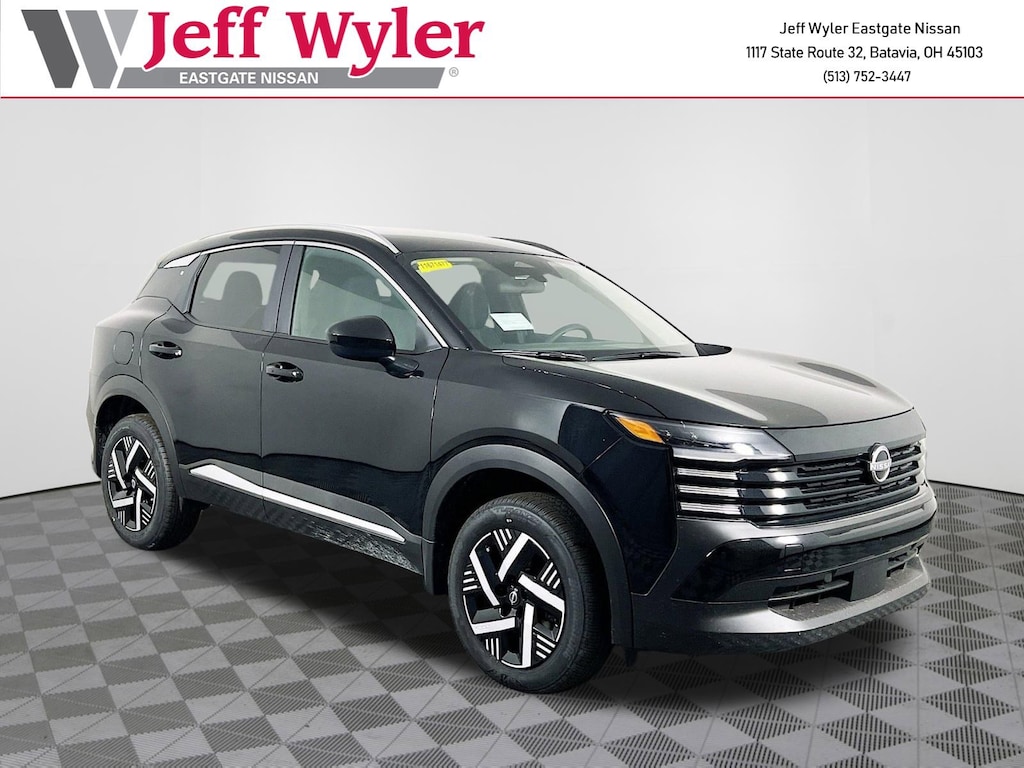 Super Black 2026 Nissan Kicks SV 2.0L DOHC FWD CVT with Xtronic 28/35 City/Highway MPG Jeff Wyler Eastgate Auto Mall is pleased to offer this great-looking 2026 Nissan Kicks SV in Super Black. Well equipped with: 4 Speakers, 4-Wheel Disc Brakes, ABS brakes, Air Conditioning, AM/FM radio, Auto High-beam Headlights, Automatic temperature control, Blind Spot Warning, Brake assist, Bumpers: body-color, Carpeted Floor Mats & Underfloor Protector, Cloth Seat Trim, Driver door bin, Driver vanity mirror, Dual front impact airbags, Dual front side impact airbags, Electronic Stability Control, Emergency communication system, Exterior Parking Camera Rear, Front anti-roll bar, Front Bucket Seats, Front Center Armrest, Front reading lights, Front wheel independent suspension, Fully automatic headlights, Illuminated entry, Knee airbag, Low tire pressure warning, NissanConnect featuring Apple CarPlay and Android Auto, Occupant sensing airbag, Outside temperature display, Overhead airbag, Panic alarm, Passenger door bin, Passenger vanity mirror, Power door mirrors, Power steering, Power windows, Radio data system, Radio: AM/FM/SiriusXM Audio System, Rear anti-roll bar, Rear reading lights, Rear side impact airbag, Rear window defroster, Rear window wiper, Remote keyless entry, Security system, Speed control, Speed-sensing steering, Splash Guards, Split folding rear seat, Spoiler, Sport steering wheel, Steering wheel mounted audio controls, Tachometer, Telescoping steering wheel, Tilt steering wheel, Traction control, Trip computer, Variably intermittent wipers, and Wheels: 17" Steel Flex w/Full Covers. 28/35 City/Highway MPG Price includes: $1000 - Nissan Customer Cash. Exp. 12/01/2025 $500 - Nissan MWR MY26 New Kicks Black Friday Bonus Cash - November. Exp. 12/01/2025