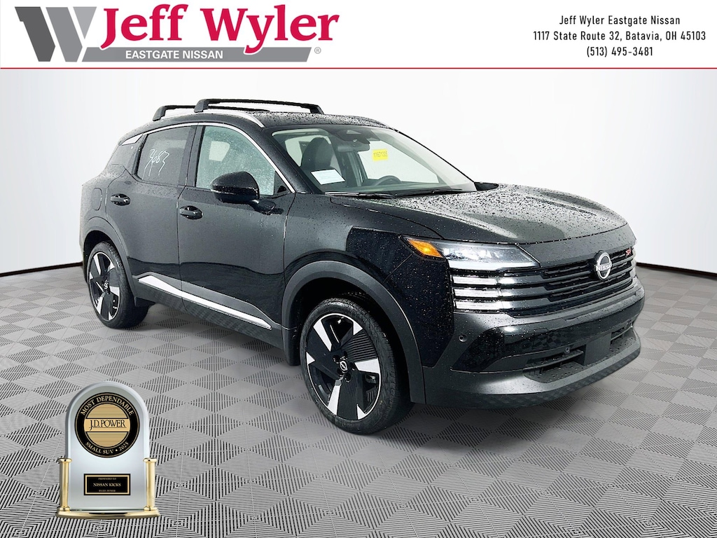 Priced below KBB Fair Purchase Price! Super Black 2026 Nissan Kicks SR 2.0L DOHC AWD CVT with Xtronic 27/34 City/Highway MPG Jeff Wyler Eastgate Auto Mall is proud to offer this superb 2026 Nissan Kicks SR in Super Black. Well equipped with: Cold Weather Package (Heated Front Seats, Heated Mirrors, and Rear Floor Heater Ducts), 17" Alloy Wheels, 19" Alloy Wheels, 4-Wheel Disc Brakes, 6 Speakers, ABS brakes, Air Conditioning, Alloy wheels, AM/FM radio, Auto High-beam Headlights, Automatic temperature control, Brake assist, Bumpers: body-color, Carpeted Floor Mats, Crossbars, Delay-off headlights, Driver door bin, Driver vanity mirror, Dual front impact airbags, Dual front side impact airbags, Electronic Stability Control, Emergency communication system: NissanConnect Services, Exterior Parking Camera Rear, Four wheel independent suspension, Front anti-roll bar, Front Bucket Seats, Front Center Armrest, Front reading lights, Fully automatic headlights, Garage door transmitter: myQ Connected Garage, Illuminated entry, Knee airbag, Leather Shift Knob, Leather steering wheel, Low tire pressure warning, NissanConnect featuring Apple CarPlay and Android Auto, Occupant sensing airbag, Outside temperature display, Overhead airbag, Overhead console, Panic alarm, Passenger door bin, Passenger vanity mirror, Power door mirrors, Power steering, Power windows, Radio data system, Radio: AM/FM/SiriusXM Audio System, Rear anti-roll bar, Rear reading lights, Rear seat center armrest, Rear side impact airbag, Rear window defroster, Rear window wiper, Remote keyless entry, Security system, Speed control, Speed-sensing steering, Splash Guards, Split folding rear seat, Spoiler, Sport Leatherette w/Cloth Insert Seat Trim, Sport steering wheel, Steering wheel mounted audio controls, Tachometer, Telescoping steering wheel, Tilt steering wheel, Traction control, Trip computer, Turn signal indicator mirrors, and Variably intermittent wipers. 27/34 City/Highway MPG Price includes: $1000 - Nissan Customer Cash. Exp. 02/02/2026 $500 - Nissan MWR MY26 Kicks Bonus Cash - January . Exp. 02/02/2026