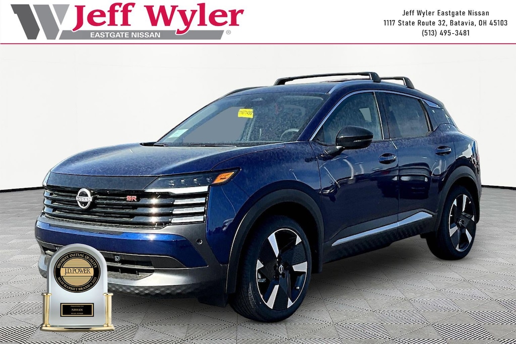 Deep Blue Pearl 2026 Nissan Kicks SR 2.0L DOHC AWD CVT with Xtronic 27/34 City/Highway MPG Jeff Wyler Eastgate Auto Mall is delighted to offer this gorgeous-looking 2026 Nissan Kicks SR in Deep Blue Pearl. Well equipped with: Cold Weather Package (Heated Front Seats, Heated Mirrors, and Rear Floor Heater Ducts), 17" Alloy Wheels, 19" Alloy Wheels, 4-Wheel Disc Brakes, 6 Speakers, ABS brakes, Air Conditioning, Alloy wheels, AM/FM radio, Auto High-beam Headlights, Automatic temperature control, Brake assist, Bumpers: body-color, Carpeted Floor Mats, Crossbars, Delay-off headlights, Driver door bin, Driver vanity mirror, Dual front impact airbags, Dual front side impact airbags, Electronic Stability Control, Emergency communication system: NissanConnect Services, Exterior Parking Camera Rear, Four wheel independent suspension, Front anti-roll bar, Front Bucket Seats, Front Center Armrest, Front reading lights, Fully automatic headlights, Garage door transmitter: myQ Connected Garage, Illuminated entry, Knee airbag, Leather Shift Knob, Leather steering wheel, Low tire pressure warning, NissanConnect featuring Apple CarPlay and Android Auto, Occupant sensing airbag, Outside temperature display, Overhead airbag, Overhead console, Panic alarm, Passenger door bin, Passenger vanity mirror, Power door mirrors, Power steering, Power windows, Radio data system, Radio: AM/FM/SiriusXM Audio System, Rear anti-roll bar, Rear reading lights, Rear seat center armrest, Rear side impact airbag, Rear window defroster, Rear window wiper, Remote keyless entry, Security system, Speed control, Speed-sensing steering, Splash Guards, Split folding rear seat, Spoiler, Sport Leatherette with Cloth Insert Seat Trim, Sport steering wheel, Steering wheel mounted audio controls, Tachometer, Telescoping steering wheel, Tilt steering wheel, Traction control, Trip computer, Turn signal indicator mirrors, and Variably intermittent wipers. 27/34 City/Highway MPG Price includes: $1500 - Nissan Customer Cash. Exp. 05/04/2026