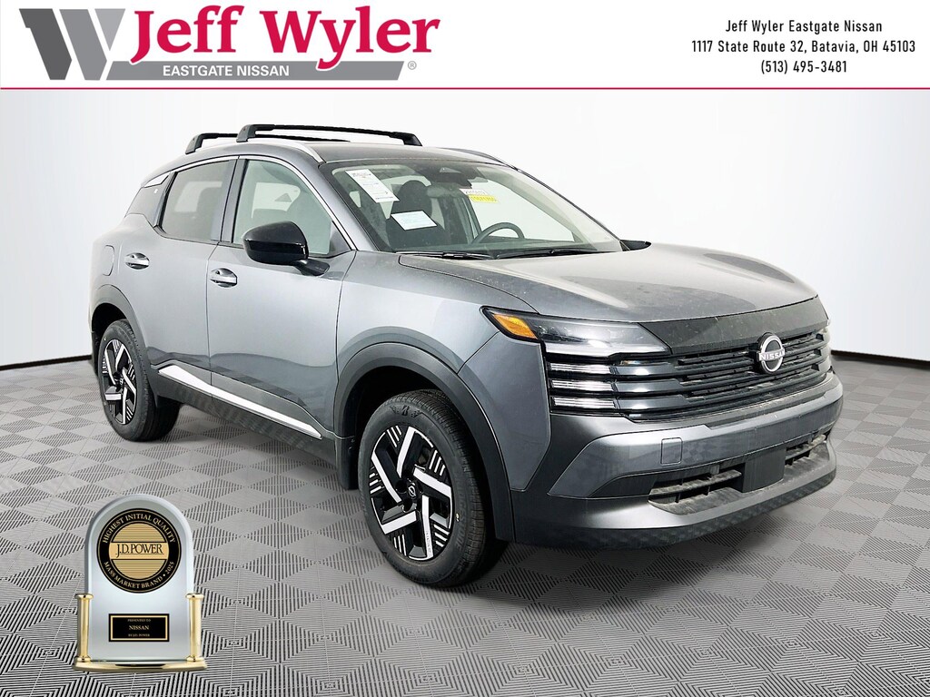 Gun Metallic 2026 Nissan Kicks SV 2.0L DOHC FWD CVT with Xtronic 28/35 City/Highway MPG Jeff Wyler Eastgate Auto Mall is pleased to offer this charming-looking 2026 Nissan Kicks SV in Gun Metallic. Well equipped with: Cold Weather Package (Heated Front Seats, Heated Mirrors, and Rear Floor Heater Ducts), 4 Speakers, 4-Wheel Disc Brakes, ABS brakes, Air Conditioning, AM/FM radio, Auto High-beam Headlights, Automatic temperature control, Blind Spot Warning, Brake assist, Bumpers: body-color, Carpeted Floor Mats and Underfloor Protector, Cloth Seat Trim, Crossbars, Driver door bin, Driver vanity mirror, Dual front impact airbags, Dual front side impact airbags, Electronic Stability Control, Emergency communication system, Exterior Parking Camera Rear, Front anti-roll bar, Front Bucket Seats, Front Center Armrest, Front reading lights, Front wheel independent suspension, Fully automatic headlights, Illuminated entry, Knee airbag, Low tire pressure warning, NissanConnect featuring Apple CarPlay and Android Auto, Occupant sensing airbag, Outside temperature display, Overhead airbag, Panic alarm, Passenger door bin, Passenger vanity mirror, Power door mirrors, Power steering, Power windows, Radio data system, Radio: AM/FM/SiriusXM Audio System, Rear anti-roll bar, Rear reading lights, Rear side impact airbag, Rear window defroster, Rear window wiper, Remote keyless entry, Security system, Speed control, Speed-sensing steering, Splash Guards, Split folding rear seat, Spoiler, Sport steering wheel, Steering wheel mounted audio controls, Tachometer, Telescoping steering wheel, Tilt steering wheel, Traction control, Trip computer, Variably intermittent wipers, and Wheels: 17" Steel Flex with Full Covers. 28/35 City/Highway MPG Price includes: $1000 - Nissan Customer Cash. Exp. 05/04/2026