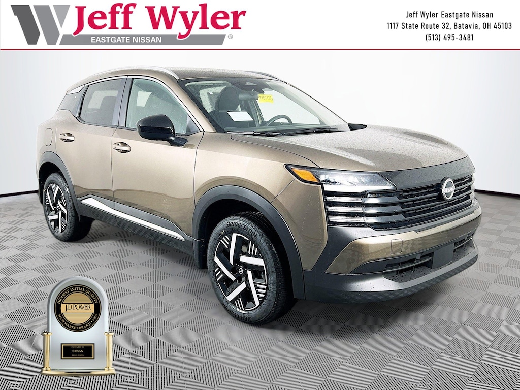 Canyon Bronze Metallic 2026 Nissan Kicks SV 2.0L DOHC FWD CVT with Xtronic 28/35 City/Highway MPG Jeff Wyler Eastgate Auto Mall is very proud to offer this beautiful 2026 Nissan Kicks SV in Canyon Bronze Metallic. Well equipped with: 4 Speakers, 4-Wheel Disc Brakes, ABS brakes, Air Conditioning, AM/FM radio, Auto High-beam Headlights, Automatic temperature control, Blind Spot Warning, Brake assist, Bumpers: body-color, Carpeted Floor Mats and Underfloor Protector, Cloth Seat Trim, Driver door bin, Driver vanity mirror, Dual front impact airbags, Dual front side impact airbags, Electronic Stability Control, Emergency communication system, Exterior Parking Camera Rear, Front anti-roll bar, Front Bucket Seats, Front Center Armrest, Front reading lights, Front wheel independent suspension, Fully automatic headlights, Illuminated entry, Knee airbag, Low tire pressure warning, NissanConnect featuring Apple CarPlay and Android Auto, Occupant sensing airbag, Outside temperature display, Overhead airbag, Panic alarm, Passenger door bin, Passenger vanity mirror, Power door mirrors, Power steering, Power windows, Radio data system, Radio: AM/FM/SiriusXM Audio System, Rear anti-roll bar, Rear reading lights, Rear side impact airbag, Rear window defroster, Rear window wiper, Remote keyless entry, Security system, Speed control, Speed-sensing steering, Splash Guards, Split folding rear seat, Spoiler, Sport steering wheel, Steering wheel mounted audio controls, Tachometer, Telescoping steering wheel, Tilt steering wheel, Traction control, Trip computer, Variably intermittent wipers, and Wheels: 17" Steel Flex with Full Covers. 28/35 City/Highway MPG Price includes: $1000 - Nissan Customer Cash. Exp. 03/31/2026