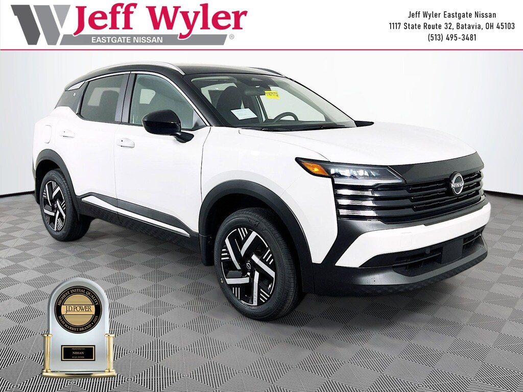 Aspen White/Super Black 2026 Nissan Kicks SV 2.0L DOHC FWD CVT with Xtronic 28/35 City/Highway MPG Jeff Wyler Eastgate Auto Mall is honored to offer this gorgeous 2026 Nissan Kicks SV in Aspen White/Super Black. Well equipped with: 2-Tone Premium Paint, 4 Speakers, 4-Wheel Disc Brakes, ABS brakes, Air Conditioning, AM/FM radio, Auto High-beam Headlights, Automatic temperature control, Blind Spot Warning, Brake assist, Bumpers: body-color, Carpeted Floor Mats and Underfloor Protector, Cloth Seat Trim, Driver door bin, Driver vanity mirror, Dual front impact airbags, Dual front side impact airbags, Electronic Stability Control, Emergency communication system, Exterior Parking Camera Rear, Front anti-roll bar, Front Bucket Seats, Front Center Armrest, Front reading lights, Front wheel independent suspension, Fully automatic headlights, Illuminated entry, Knee airbag, Low tire pressure warning, NissanConnect featuring Apple CarPlay and Android Auto, Occupant sensing airbag, Outside temperature display, Overhead airbag, Panic alarm, Passenger door bin, Passenger vanity mirror, Power door mirrors, Power steering, Power windows, Radio data system, Radio: AM/FM/SiriusXM Audio System, Rear anti-roll bar, Rear reading lights, Rear side impact airbag, Rear window defroster, Rear window wiper, Remote keyless entry, Security system, Speed control, Speed-sensing steering, Splash Guards, Split folding rear seat, Spoiler, Sport steering wheel, Steering wheel mounted audio controls, Tachometer, Telescoping steering wheel, Tilt steering wheel, Traction control, Trip computer, Variably intermittent wipers, and Wheels: 17" Steel Flex with Full Covers. 28/35 City/Highway MPG Price includes: $1000 - Nissan Customer Cash. Exp. 03/31/2026