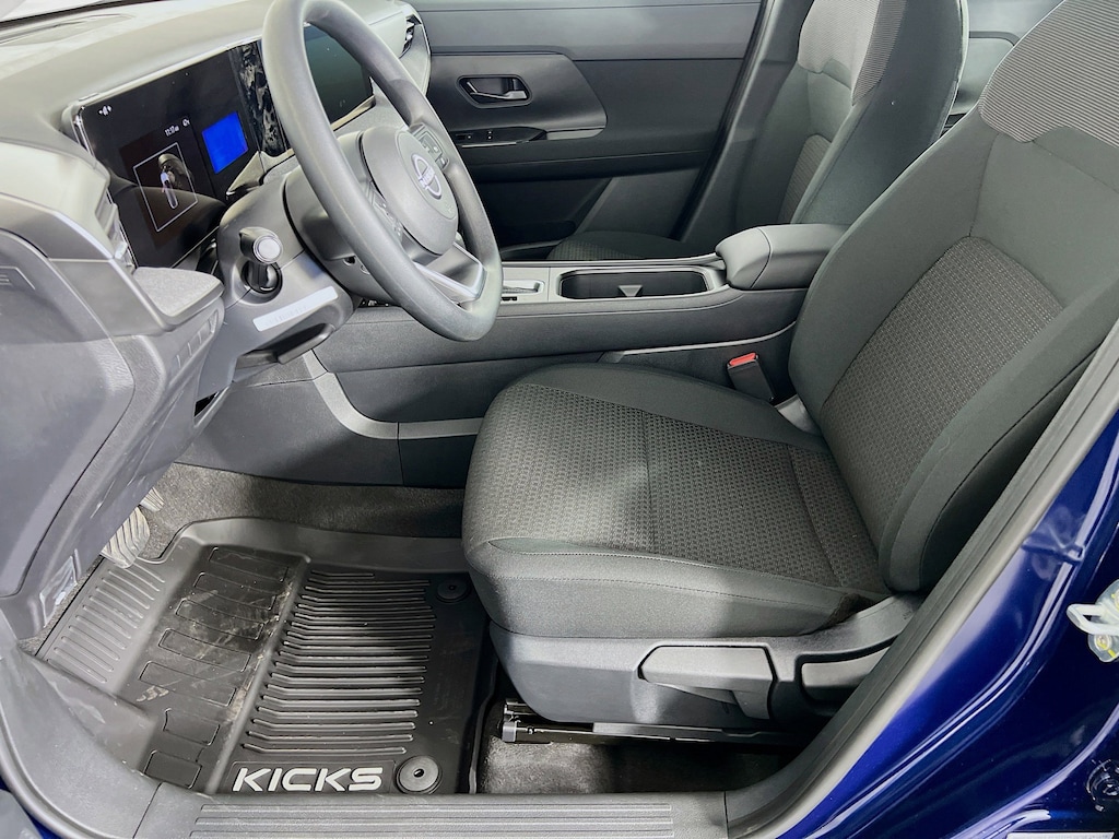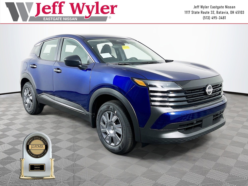 Deep Blue Pearl 2026 Nissan Kicks S 2.0L DOHC AWD CVT with Xtronic 27/34 City/Highway MPG Jeff Wyler Eastgate Auto Mall is proud to offer this attractive-looking 2026 Nissan Kicks S in Deep Blue Pearl. Well equipped with: 4 Speakers, 4-Wheel Disc Brakes, ABS brakes, Air Conditioning, AM/FM radio, Auto High-beam Headlights, Blind Spot Warning, Brake assist, Bumpers: body-color, Carpeted Floor Mats, Cloth Seat Trim, Driver door bin, Driver vanity mirror, Driver's Seat Mounted Armrest, Dual front impact airbags, Dual front side impact airbags, Electronic Stability Control, Emergency communication system, Exterior Parking Camera Rear, Four wheel independent suspension, Front anti-roll bar, Front Bucket Seats, Front reading lights, Fully automatic headlights, Illuminated entry, Knee airbag, Low tire pressure warning, NissanConnect featuring Apple CarPlay and Android Auto, Occupant sensing airbag, Outside temperature display, Overhead airbag, Panic alarm, Passenger door bin, Passenger vanity mirror, Power door mirrors, Power steering, Power windows, Radio data system, Radio: AM/FM/SiriusXM Audio System, Rear anti-roll bar, Rear reading lights, Rear side impact airbag, Rear window defroster, Rear window wiper, Remote keyless entry, Security system, Speed control, Speed-sensing steering, Splash Guards, Split folding rear seat, Spoiler, Sport steering wheel, Steering wheel mounted audio controls, Tachometer, Telescoping steering wheel, Tilt steering wheel, Traction control, Trip computer, Variably intermittent wipers, and Wheels: 16" Steel with Full Covers. 27/34 City/Highway MPG