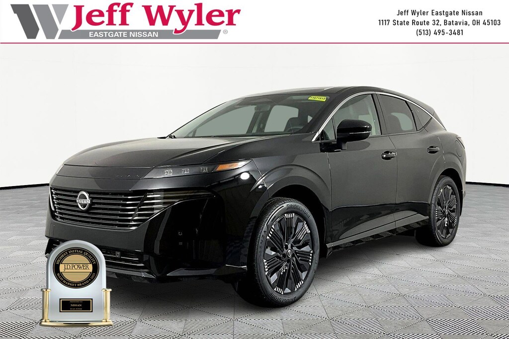 Priced below KBB Fair Purchase Price! Super Black 2026 Nissan Murano Platinum I4 AWD 9-Speed Automatic 21/27 City/Highway MPG Jeff Wyler Eastgate Auto Mall is honored to offer this stunning 2026 Nissan Murano Platinum in Super Black. Well equipped with: Cargo Package (3-Position Cargo Area Protector, Cargo Net, First Aid Kit, and Retractable Cargo Cover), 10 Speakers, 21" Alloy Wheels, 4-Wheel Disc Brakes, ABS brakes, Air Conditioning, Alloy wheels, AM/FM radio: SiriusXM w/360L, Auto High-beam Headlights, Auto tilt-away steering wheel, Auto-dimming Rear-View mirror, Automatic temperature control, Brake assist, Bumpers: body-color, Carpeted Floor and Cargo Mats, Child-Seat-Sensing Airbag, Compass, Delay-off headlights, Driver door bin, Driver vanity mirror, Dual front impact airbags, Dual front side impact airbags, Electronic Stability Control, Emergency communication system: NissanConnect Services, Four wheel independent suspension, Front anti-roll bar, Front Bucket Seats, Front Center Armrest, Front dual zone A/C, Front reading lights, Fully automatic headlights, Garage door transmitter: HomeLink, Heads-Up Display, Heated and Ventilated Front Bucket Seats with Massage, Heated door mirrors, Heated front seats, Heated rear seats, Heated steering wheel, Illuminated entry, Illuminated Kick Plates, Knee airbag, Low tire pressure warning, Memory seat, Navigation system: NissanConnect with Navigation and Services, Occupant sensing airbag, Outside temperature display, Overhead airbag, Overhead console, Painted Splash Guards, Panic alarm, Passenger door bin, Passenger vanity mirror, Power door mirrors, Power driver seat, Power Liftgate, Power moonroof: Panoramic, Power passenger seat, Power steering, Power windows, Quilted Semi-Aniline Leather-Appointed Seat Trim, Radio data system, Radio: NissanConnect with 4 Hybrid, Rain sensing wipers, Rear anti-roll bar, Rear reading lights, Rear seat center armrest, Rear side impact airbag, Rear window defroster, Rear window wiper, Remote keyless entry, Security system, Speed control, Speed-Sensitive Wipers, Split folding rear seat, Spoiler, Steering wheel memory, Steering wheel mounted audio controls, Tablet Holder, Tachometer, Telescoping steering wheel, Tilt steering wheel, Traction control, Trip computer, Turn signal indicator mirrors, Variably intermittent wipers, Ventilated front seats, and Wireless Apple CarPlay/Wireless Android Auto. 21/27 City/Highway MPG Price includes: $4000 - Nissan Customer Cash. Exp. 03/31/2026