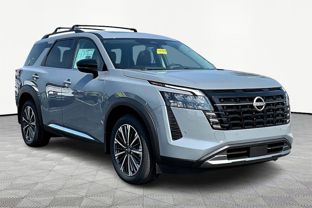 Priced below KBB Fair Purchase Price! Boulder Gray Pearl 2026 Nissan Pathfinder Platinum 3.5L V6 DOHC 4WD 9-Speed Automatic 20/25 City/Highway MPG Jeff Wyler Eastgate Auto Mall is proud to offer this stunning-looking 2026 Nissan Pathfinder Platinum in Boulder Gray Pearl. Well equipped with: Cargo Package (Cargo Area Protector, Cargo Net, and First Aid), 13 Speakers, 3rd row seats: bench, 4-Piece Black Splash Guards, 4-Wheel Disc Brakes, ABS brakes, Air Conditioning, Alloy wheels, AM/FM radio: SiriusXM w/360L, Auto High-beam Headlights, Auto tilt-away steering wheel, Auto-dimming Rear-View mirror, Automatic temperature control, Bench Seat Carpeted Floor Mats, Bodyside moldings, Bose Premium Audio System, Brake assist, Bumpers: body-color, Climate Controlled Front Bucket Seats, Cross Bars, Delay-off headlights, Driver door bin, Driver vanity mirror, Dual front impact airbags, Dual front side impact airbags, Electronic Stability Control, Emergency communication system: NissanConnect Services, Four wheel independent suspension, Front anti-roll bar, Front Bucket Seats, Front Center Armrest, Front dual zone A/C, Front reading lights, Fully automatic headlights, Garage door transmitter: HomeLink, Heads-Up Display, Heated door mirrors, Heated front seats, Heated rear seats, Heated steering wheel, Illuminated entry, Knee airbag, Low tire pressure warning, Memory seat, NissanConnect featuring Apple CarPlay and Android Auto, Occupant sensing airbag, Outside temperature display, Overhead airbag, Overhead console, Panic alarm, Passenger door bin, Passenger vanity mirror, Power door mirrors, Power driver seat, Power Liftgate, Power moonroof, Power passenger seat, Power steering, Power windows, Premium Paint, Radio data system, Radio: AM/FM Audio System with NissanConnect, Rain sensing wipers, Rear air conditioning, Rear anti-roll bar, Rear reading lights, Rear seat center armrest, Rear side impact airbag, Rear window defroster, Rear window wiper, Reclining 3rd row seat, Remote keyless entry, Security system, Semi-Aniline Leather-Appointed Seating Surfaces, Speed control, Speed-sensing steering, Speed-Sensitive Wipers, Split folding rear seat, Spoiler, Steering wheel memory, Steering wheel mounted audio controls, Tachometer, Telescoping steering wheel, Tilt steering wheel, Traction control, Trip computer, Turn signal indicator mirrors, Variably intermittent wipers, Ventilated front seats, and Wheels: 20" Machined Alloy. Price includes: $3500 - Nissan Customer Cash. Exp. 05/04/2026