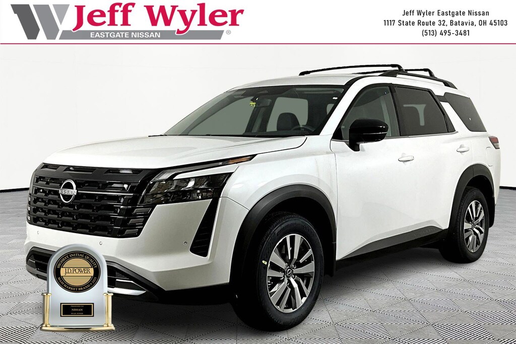Priced below KBB Fair Purchase Price! Everest White Pearl Tricoat 2026 Nissan Pathfinder SL 3.5L V6 DOHC 4WD 9-Speed Automatic 21/27 City/Highway MPG Jeff Wyler Eastgate Auto Mall is very proud to offer this stunning-looking 2026 Nissan Pathfinder SL in Everest White Pearl Tricoat. Well equipped with: 18" Machined Alloy Wheels, 3rd row seats: bench, 4-Piece Black Splash Guards, 4-Wheel Disc Brakes, 6 Speakers, ABS brakes, Air Conditioning, Alloy wheels, AM/FM radio: SiriusXM w/360L, Auto High-beam Headlights, Auto-dimming Rear-View mirror, Automatic temperature control, Bench Seat Carpeted Floor Mats, Brake assist, Bumpers: body-color, Cross Bars, Delay-off headlights, Driver door bin, Driver vanity mirror, Dual front impact airbags, Dual front side impact airbags, Electronic Stability Control, Emergency communication system: NissanConnect Services, Four wheel independent suspension, Front anti-roll bar, Front Bucket Seats, Front Center Armrest, Front dual zone A/C, Front reading lights, Fully automatic headlights, Garage door transmitter: HomeLink, Heated door mirrors, Heated Front Bucket Seats, Heated front seats, Heated steering wheel, Illuminated entry, Knee airbag, Low tire pressure warning, NissanConnect featuring Apple CarPlay and Android Auto, Occupant sensing airbag, Outside temperature display, Overhead airbag, Overhead console, Panic alarm, Passenger door bin, Passenger vanity mirror, Power door mirrors, Power driver seat, Power Liftgate, Power steering, Power windows, Premium Paint, Radio data system, Radio: AM/FM Audio System with NissanConnect, Rear air conditioning, Rear anti-roll bar, Rear reading lights, Rear seat center armrest, Rear side impact airbag, Rear window defroster, Rear window wiper, Reclining 3rd row seat, Remote keyless entry, Security system, Speed control, Speed-sensing steering, Split folding rear seat, Spoiler, Steering wheel mounted audio controls, Tachometer, TailorFit Appointed Seating Surfaces, Telescoping steering wheel, Tilt steering wheel, Traction control, Trip computer, Turn signal indicator mirrors, and Variably intermittent wipers. 21/27 City/Highway MPG Price includes: $2000 - Nissan Customer Cash. Exp. 03/31/2026