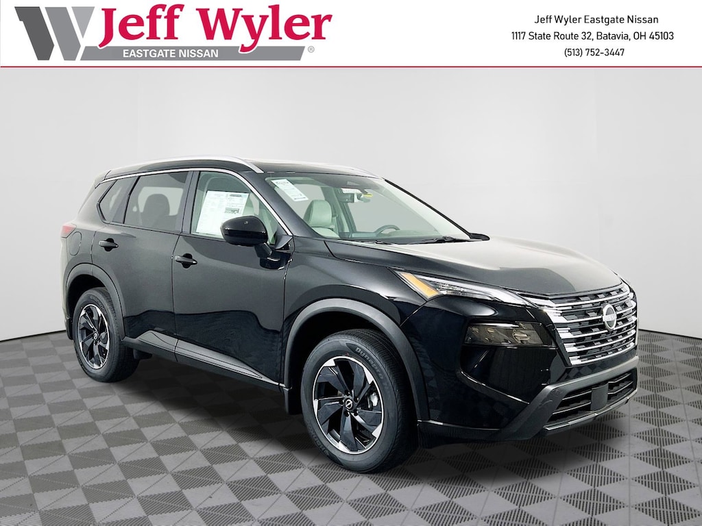 Super Black 2026 Nissan Rogue SV 1.5L DOHC AWD CVT with Xtronic 28/35 City/Highway MPG Jeff Wyler Eastgate Auto Mall is pumped up to offer this stunning 2026 Nissan Rogue SV in Super Black. Well equipped with: Cold Weather Package (Heated Front Seats and Heated Steering Wheel), SV Premium Package (Leatherette Door Trim Inserts w/Stitch, Panoramic Moonroof, Prima-Tex Leatherette Seat Trim, Rear Door Sunshades, Rear Personal Lights, and Silver Painted Roof Rails), 4-Wheel Disc Brakes, 6 Speakers, ABS brakes, Air Conditioning, Alloy wheels, AM/FM radio: Sirius, Apple CarPlay/Android Auto, Auto High-beam Headlights, Automatic temperature control, Black Splash Guards (Set of 4) (B92), Brake assist, Bumpers: body-color, Cloth Seat Trim w/Patterned Inserts, Delay-off headlights, Driver door bin, Driver vanity mirror, Dual front impact airbags, Dual front side impact airbags, Electronic Stability Control, Emergency communication system: NissanConnect Services, First Aid Kit, Floor Mats w/1-Piece Cargo Area Protector, Four wheel independent suspension, Frameless Rearview Mirror w/Universal Remote, Front anti-roll bar, Front Bucket Seats, Front Center Armrest, Front dual zone A/C, Front reading lights, Fully automatic headlights, Heated door mirrors, Illuminated entry, Knee airbag, Low tire pressure warning, Occupant sensing airbag, Outside temperature display, Overhead airbag, Overhead console, Panic alarm, Passenger door bin, Passenger vanity mirror, Power door mirrors, Power driver seat, Power Liftgate, Power steering, Power windows, Radio data system, Radio: AM/FM NissanConnect, Rear anti-roll bar, Rear seat center armrest, Rear side impact airbag, Rear window defroster, Rear window wiper, Remote keyless entry, Retractable Cargo Cover, Speed control, Speed-sensing steering, Speed-Sensitive Wipers, Split folding rear seat, Spoiler, Steering wheel mounted audio controls, Tachometer, Telescoping steering wheel, Tilt steering wheel, Traction control, Trip computer, Variably intermittent wipers, and Wheels: 18" Dark Painted Machine Finished Alloy. 28/35 City/Highway MPG Price includes: $1500 - Nissan Customer Cash. Exp. 12/01/2025