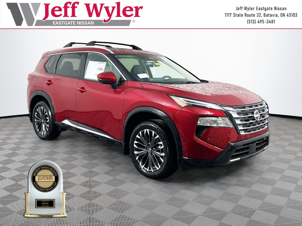 Priced below KBB Fair Purchase Price! Scarlet Ember Tintcoat 2026 Nissan Rogue Platinum 1.5L DOHC AWD CVT with Xtronic 28/35 City/Highway MPG Jeff Wyler Eastgate Auto Mall is very proud to offer this handsome-looking 2026 Nissan Rogue Platinum in Scarlet Ember Tintcoat. Well equipped with: Platinum Premium Package (Head-Up Display, Heated Rear Seats, Motion-Activated Power Liftgate, and Tri-Zone Automatic Temperature Control), 10 Speakers, 4-Wheel Disc Brakes, ABS brakes, Air Conditioning, Alloy wheels, AM/FM radio: SiriusXM w/360L, Auto High-beam Headlights, Auto-dimming Rear-View mirror, Automatic temperature control, Black Splash Guards (set of 4), Bose Premium Audio System, Brake assist, Bumpers: body-color, Chrome Rear Bumper Protector, Delay-off headlights, Driver door bin, Driver vanity mirror, Dual front impact airbags, Dual front side impact airbags, Electronic Stability Control, Emergency communication system: NissanConnect Services, First Aid Kit, Floor Mats with 2-Piece Cargo Area Protector, Four wheel independent suspension, Front anti-roll bar, Front Bucket Seats, Front Center Armrest, Front dual zone A/C, Front reading lights, Fully automatic headlights, Garage door transmitter: myQ Connected Garage, Heads-Up Display, Heated door mirrors, Heated Front Bucket Seats, Heated front seats, Heated steering wheel, Illuminated entry, Knee airbag, Low tire pressure warning, Memory seat, Navigation system: Google Maps, Occupant sensing airbag, Outside temperature display, Overhead airbag, Overhead console, Panic alarm, Passenger door bin, Passenger vanity mirror, Power door mirrors, Power driver seat, Power Liftgate, Power moonroof, Power passenger seat, Power steering, Power windows, Premium Paint, Quilted Semi-Aniline Leather-Appointed Seat Trim, Radio data system, Radio: AM/FM NissanConnect with Navigation, Rear anti-roll bar, Rear reading lights, Rear seat center armrest, Rear side impact airbag, Rear window defroster, Rear window wiper, Remote keyless entry, Roof Rail Cross Bars, Security system, Speed control, Speed-sensing steering, Speed-Sensitive Wipers, Split folding rear seat, Spoiler, Steering wheel mounted audio controls, Tachometer, Telescoping steering wheel, Tilt steering wheel, Traction control, Trip computer, Turn signal indicator mirrors, Variably intermittent wipers, Wheels: 19" Unique Dark Painted Aluminum Alloy, and Wireless Apple CarPlay/Wireless Android Auto. 28/35 City/Highway MPG Price includes: $2500 - Nissan Customer Cash. Exp. 01/05/2026 $500 - Nissan MY26 Rogue and Murano Customer Cash. Exp. 01/05/2026