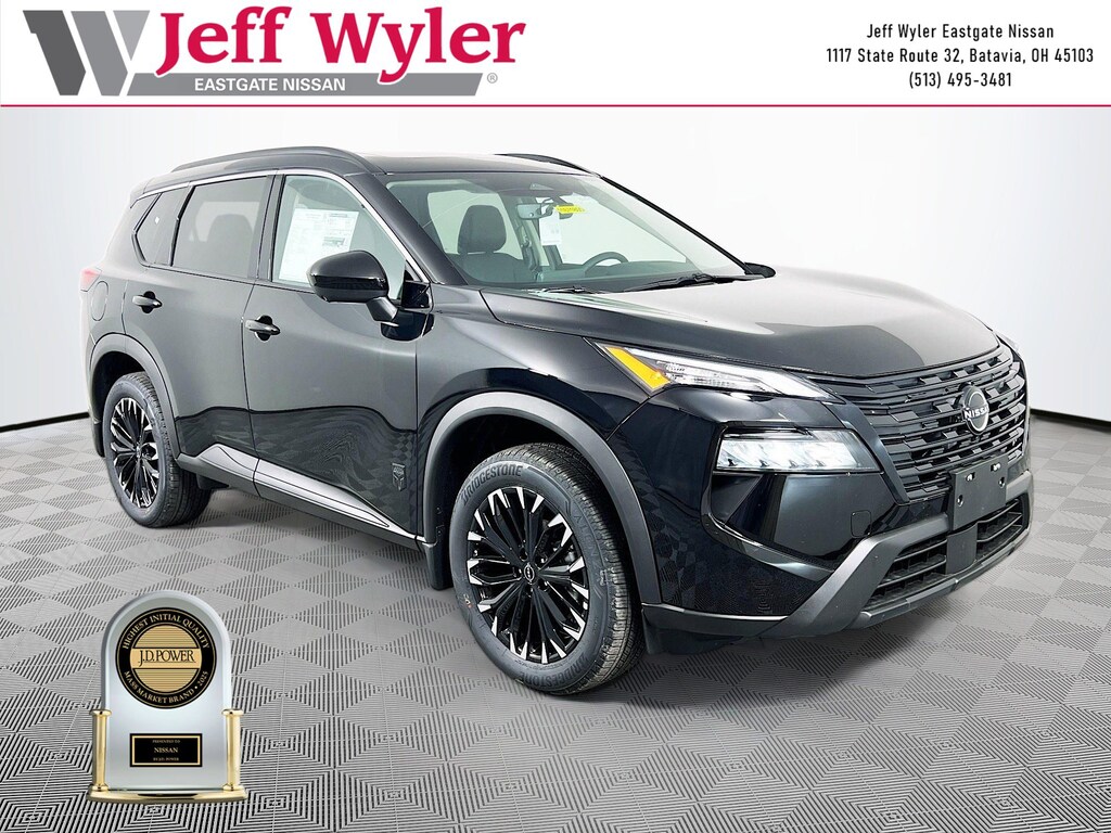Priced below KBB Fair Purchase Price! Super Black 2026 Nissan Rogue Dark Armor 1.5L DOHC AWD CVT with Xtronic 28/35 City/Highway MPG Jeff Wyler Eastgate Auto Mall is pleased to offer this gorgeous 2026 Nissan Rogue Dark Armor in Super Black. Well equipped with: 4-Wheel Disc Brakes, 6 Speakers, ABS brakes, Air Conditioning, Alloy wheels, AM/FM radio, Apple CarPlay/Android Auto, Auto High-beam Headlights, Automatic temperature control, Black Splash Guards (set of 4), Brake assist, Bumpers: body-color, Delay-off headlights, Driver door bin, Driver vanity mirror, Dual front impact airbags, Dual front side impact airbags, Electronic Stability Control, Emergency communication system: NissanConnect Services, Exterior Parking Camera Rear, Floor Mats with 1-Piece Cargo Area Protector, Four wheel independent suspension, Frameless Rearview Mirror with Universal Remote, Front anti-roll bar, Front Bucket Seats, Front Center Armrest, Front dual zone A/C, Front reading lights, Fully automatic headlights, Heated door mirrors, Heated Front Bucket Seats, Heated front seats, Heated steering wheel, Illuminated entry, Illuminated Kick Plates, Knee airbag, Low tire pressure warning, Occupant sensing airbag, Outside temperature display, Overhead airbag, Overhead console, Panic alarm, Passenger door bin, Passenger vanity mirror, Power door mirrors, Power driver seat, Power Liftgate, Power moonroof, Power steering, Power windows, Prima-Tex Leatherette Seat Trim, Radio data system, Radio: AM/FM NissanConnect, Rear anti-roll bar, Rear Parking Sensors, Rear reading lights, Rear seat center armrest, Rear side impact airbag, Rear window defroster, Rear window wiper, Remote keyless entry, Speed control, Speed-sensing steering, Speed-Sensitive Wipers, Split folding rear seat, Spoiler, Steering wheel mounted audio controls, Tachometer, Telescoping steering wheel, Tilt steering wheel, Traction control, Trip computer, Variably intermittent wipers, and Wheels: 19" Black Painted and Machine Finished Alloy. 28/35 City/Highway MPG Price includes: $3500 - Nissan Customer Cash. Exp. 03/31/2026