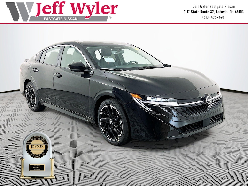 Super Black 2026 Nissan Sentra SR 2.0L I4 DOHC FWD CVT with Xtronic 30/38 City/Highway MPG Jeff Wyler Eastgate Auto Mall is honored to offer this charming 2026 Nissan Sentra SR in Super Black. Well equipped with: Floor Mat Package, SR All Weather Package (Dual Zone Auto Climate Control, Heated Front Seats, and Heated Steering Wheel), SR Moonroof Package (Power Tilt Sliding Sunroof with Manual Sunshade), SR Premium Package (6-Way Power Driver's Seat, Auto-Dimming Rear-View Mirror, Bose Premium Audio System, Digital Around View Monitor, Moving Object Detection (MOD), Pro Pilot Assist, Rear Automatic Emergency Braking, Rear Parking Sensor Aid, Sport Leatherette Seat Trim, and Visor DR/AS w/LED Light), 18" Black Alloy Wheels, 18" Machined Alloy Wheels, 4-Wheel Disc Brakes, 6 Speakers, ABS brakes, Air Conditioning, Alloy wheels, AM/FM radio: Sirius, Auto High-beam Headlights, Automatic temperature control, Brake assist, Bumpers: body-color, Delay-off headlights, Driver door bin, Driver vanity mirror, Dual front impact airbags, Dual front side impact airbags, Electronic Stability Control, Emergency communication system: NissanConnect Services, Four wheel independent suspension, Front anti-roll bar, Front Bucket Seats, Front Center Armrest, Front reading lights, Fully automatic headlights, Garage door transmitter, Heated door mirrors, Illuminated entry, Illuminated Kick Plates, Knee airbag, Leather steering wheel, Low tire pressure warning, Nissan USB Charging Cable Set, Occupant sensing airbag, Outside temperature display, Overhead airbag, Overhead console, Panic alarm, Passenger door bin, Passenger vanity mirror, Power door mirrors, Power steering, Power windows, Radio data system, Radio: AM/FM with RDS/MP3, Rear anti-roll bar, Rear seat center armrest, Rear side impact airbag, Rear window defroster, Remote keyless entry, Security system, Speed control, Speed-sensing steering, Split folding rear seat, Spoiler, Sport Cloth Seat Trim, Steering wheel mounted audio controls, Tachometer, Telescoping steering wheel, Tilt steering wheel, Traction control, Trip computer, Turn signal indicator mirrors, Variably intermittent wipers, and Wireless Apple CarPlay/Wireless Android Auto. 30/38 City/Highway MPG Price includes: $500 - Nissan Customer Cash. Exp. 05/04/2026