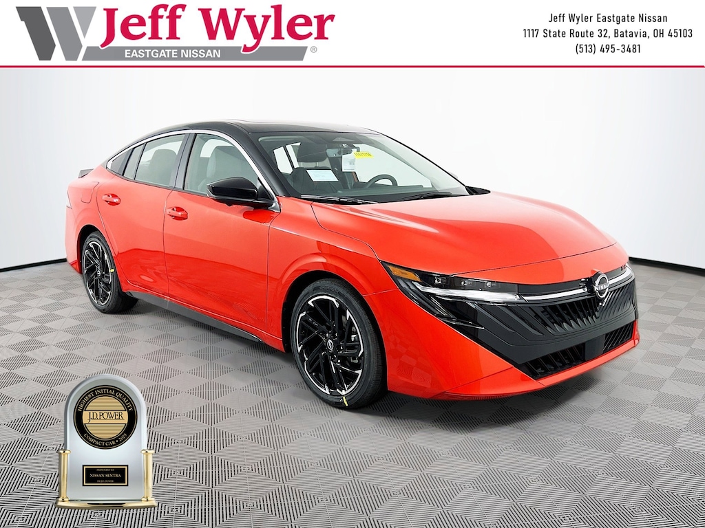 Energetic Ember/Super Blk 2026 Nissan Sentra SR 2.0L I4 DOHC FWD CVT with Xtronic 30/38 City/Highway MPG Jeff Wyler Eastgate Auto Mall is delighted to offer this great-looking 2026 Nissan Sentra SR in Energetic Ember/Super Blk. Well equipped with: Floor Mat Package, SR All Weather Package (Dual Zone Auto Climate Control, Heated Front Seats, and Heated Steering Wheel), SR Moonroof Package (Power Tilt Sliding Sunroof with Manual Sunshade), SR Premium Package (6-Way Power Driver's Seat, Auto-Dimming Rear-View Mirror, Bose Premium Audio System, Digital Around View Monitor, Moving Object Detection (MOD), Pro Pilot Assist, Rear Automatic Emergency Braking, Rear Parking Sensor Aid, Sport Leatherette Seat Trim, and Visor DR/AS w/LED Light), 18" Black Alloy Wheels, 18" Machined Alloy Wheels, 2-Tone Premium Paint, 4-Wheel Disc Brakes, 6 Speakers, ABS brakes, Air Conditioning, Alloy wheels, AM/FM radio: Sirius, Auto High-beam Headlights, Automatic temperature control, Brake assist, Bumpers: body-color, Delay-off headlights, Driver door bin, Driver vanity mirror, Dual front impact airbags, Dual front side impact airbags, Electronic Stability Control, Emergency communication system: NissanConnect Services, Four wheel independent suspension, Front anti-roll bar, Front Bucket Seats, Front Center Armrest, Front reading lights, Fully automatic headlights, Garage door transmitter, Heated door mirrors, Illuminated entry, Illuminated Kick Plates, Knee airbag, Leather steering wheel, Low tire pressure warning, Occupant sensing airbag, Outside temperature display, Overhead airbag, Overhead console, Panic alarm, Passenger door bin, Passenger vanity mirror, Power door mirrors, Power steering, Power windows, Radio data system, Radio: AM/FM with RDS/MP3, Rear anti-roll bar, Rear seat center armrest, Rear side impact airbag, Rear window defroster, Remote keyless entry, Security system, Speed control, Speed-sensing steering, Split folding rear seat, Spoiler, Sport Cloth Seat Trim, Steering wheel mounted audio controls, Tachometer, Telescoping steering wheel, Tilt steering wheel, Traction control, Trip computer, Turn signal indicator mirrors, Variably intermittent wipers, and Wireless Apple CarPlay/Wireless Android Auto. 30/38 City/Highway MPG Price includes: $500 - Nissan MY26 Sentra Customer Cash (All Markets) - March. Exp. 03/31/2026