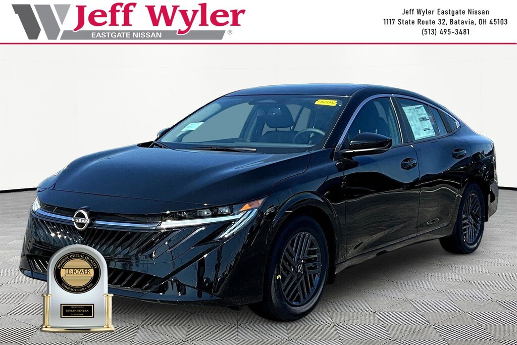 Super Black 2026 Nissan Sentra SV 2.0L I4 DOHC FWD CVT with Xtronic 30/38 City/Highway MPG Jeff Wyler Eastgate Auto Mall is proud to offer this gorgeous 2026 Nissan Sentra SV in Super Black. Well equipped with: Floor Mat Package, SV Convenience Package (6 Speakers, Ambient Lighting, Auto Diming Inside Mirror, Heated Exterior Mirrors, Heated Front Seats, Heated Steering Wheel, I-Key with Approach Unlock All Plus Walk Away Lock, Soft Knee Pad, Synthetic Leather Steering Wheel, Visor DR/AS w/LED Light, and Wireless Charging For Personal Devices), SV Moonroof Package (Power Tilt Sliding Sunroof with Manual Sunshade), Trunk Package (Hide-A-Way Trunk Net), 16" Machined Alloy Wheels, 4 Speakers, 4-Wheel Disc Brakes, ABS brakes, Air Conditioning, Alloy wheels, AM/FM radio: Sirius, Auto High-beam Headlights, Automatic temperature control, Body Colored Splash Guards (4-Piece), Brake assist, Bumpers: body-color, Delay-off headlights, Driver door bin, Driver vanity mirror, Dual front impact airbags, Dual front side impact airbags, Electronic Stability Control, Four wheel independent suspension, Front anti-roll bar, Front Bucket Seats, Front Center Armrest, Front reading lights, Fully automatic headlights, Illuminated entry, Interior Door Scuff Protection, Knee airbag, Low tire pressure warning, Nissan USB Charging Cable Set, Occupant sensing airbag, Outside temperature display, Overhead airbag, Overhead console, Panic alarm, Passenger door bin, Passenger vanity mirror, Power door mirrors, Power steering, Power windows, Premium Cloth Seat Trim, Radio data system, Radio: AM/FM with RDS/MP3, Rear anti-roll bar, Rear side impact airbag, Rear window defroster, Remote keyless entry, Security system, Speed control, Speed-sensing steering, Split folding rear seat, Steering wheel mounted audio controls, Tachometer, Telescoping steering wheel, Tilt steering wheel, Traction control, Trip computer, Variably intermittent wipers, and Wireless Apple CarPlay/Wireless Android Auto. 30/38 City/Highway MPG Price includes: $500 - Nissan Customer Cash. Exp. 05/04/2026