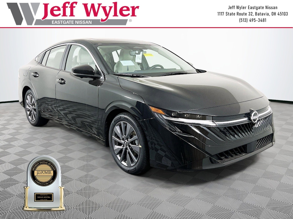 Super Black 2026 Nissan Sentra SL 2.0L I4 DOHC FWD CVT with Xtronic 30/38 City/Highway MPG Jeff Wyler Eastgate Auto Mall is pumped up to offer this good-looking 2026 Nissan Sentra SL in Super Black. Well equipped with: Floor Mat Package, 17" Machined Alloy Wheels, 4-Wheel Disc Brakes, 8 Speakers, ABS brakes, Air Conditioning, Alloy wheels, AM/FM radio: Sirius, Auto High-beam Headlights, Auto-dimming Rear-View mirror, Automatic temperature control, Brake assist, Bumpers: body-color, Delay-off headlights, Driver door bin, Driver vanity mirror, Dual front impact airbags, Dual front side impact airbags, Electronic Stability Control, Emergency communication system: NissanConnect Services, Four wheel independent suspension, Front anti-roll bar, Front Bucket Seats, Front Center Armrest, Front dual zone A/C, Front reading lights, Fully automatic headlights, Garage door transmitter, Heated door mirrors, Heated Front Bucket Seats, Heated front seats, Heated steering wheel, Illuminated entry, Illuminated Kick Plates, Knee airbag, Leather steering wheel, Low tire pressure warning, Occupant sensing airbag, Outside temperature display, Overhead airbag, Overhead console, Panic alarm, Passenger door bin, Passenger vanity mirror, Power door mirrors, Power driver seat, Power moonroof, Power steering, Power windows, Quilted TailorFit Synthetic Leather Seat Trim, Radio data system, Radio: AM/FM with RDS/MP3, Rear anti-roll bar, Rear seat center armrest, Rear side impact airbag, Rear window defroster, Remote keyless entry, Security system, Speed control, Speed-sensing steering, Split folding rear seat, Steering wheel mounted audio controls, Tachometer, Telescoping steering wheel, Tilt steering wheel, Traction control, Trip computer, Turn signal indicator mirrors, Variably intermittent wipers, and Wireless Apple CarPlay/Wireless Android Auto. 30/38 City/Highway MPG Price includes: $500 - Nissan MY26 Sentra Customer Cash (All Markets) - March. Exp. 03/31/2026