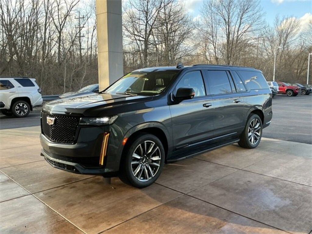 Jeff Wyler Springfield Auto Mall is very proud to offer this outstanding-looking 2021 Cadillac Escalade ESV Sport Platinum in Shadow Metallic. Well equipped with: Driver Assist Tech Package (Adaptive Cruise Control, Air Ride Adaptive Suspension, Automatic Seat Belt Tightening, Enhanced Automatic Emergency Braking, Illuminating Front & Rear Sill Plates, Reverse Automatic Braking, and Soft Closing Front & Rear Doors), Heavy-Duty Trailering Package (2-Speed Active Transfer Case, Extra Capacity Cooling System, Trailer Tire Pressure Monitoring System, Trailering Assist Guidelines, and Wired Auxiliary Trailer Camera (LPO)), Preferred Equipment Group 1SH (Air Ionizer, AKG Studio Reference 36-Speaker Audio System, Body-Color Door Handles, Door Lock & Latch Shields, Electronic Limited-Slip Differential, Enhanced Automatic Parking Assist, Floor Console w/Covered Storage, Glass Breakage Sensor, Hitch Guidance w/Hitch View, In-Vehicle Trailering System App, Integrated Trailer Brake Controller, Lane Keep Assist w/Lane Departure Warning, Platinum Interior Trim, Power Panoramic Tilt-Sliding Sunroof, Rear Camera Mirror, Rear Camera Mirror Washer, Rear Cross Traffic Alert, Rear Seat Entertainment System, Reconfigurable Full-Color Head-Up Display, Running Board Assist Steps, Theft-Deterrent Alarm System, Trailer Side Blind Zone Alert, Vehicle Inclination Sensor, and Vehicle Interior Movement Sensor), 16.9 Diagonal OLED Infotainment Screen, 2-Presets Memory For Driver Seat Adjuster, 3.23 Axle Ratio, 3rd row seats: split-bench, 4-Way Power Driver Lumbar Seat Adjuster, 4-Way Power Front Passenger Lumbar Seat Adjuster, 4-Wheel Disc Brakes, 8-Way Power Driver Seat Adjuster, 8-Way Power Front Passenger Seat Adjuster, A/V remote, ABS brakes, Adaptive suspension, Air Conditioning, Alloy wheels, AM/FM radio: SiriusXM with 360L, Apple CarPlay/Android Auto, Audio memory, Auto High-beam Headlights, Auto tilt-away steering wheel, Auto-dimming door mirrors, Automatic temperature control, Brake assist, Bumpers: body-color, Compass, Delay-off headlights, Door auto-latch, Driver door bin, Driver vanity mirror, Dual front impact airbags, Dual front side impact airbags, Electronic Stability Control, Emergency communication system: OnStar and Cadillac connected services capable, Four wheel independent suspension, Front anti-roll bar, Front Bucket Seats, Front Center Armrest w/Storage, Front dual zone A/C, Front reading lights, Full Semi-Aniline Leather Seats, Fully automatic headlights, Garage door transmitter, Genuine wood console insert, Genuine wood dashboard insert, Genuine wood door panel insert, HD Radio, Headphones, Heads-Up Display, Heated & Ventilated Driver & Front Passenger Seats, Heated door mirrors, Heated Driver & Front Passenger Seats, Heated front seats, Heated rear seats, Heated steering wheel, Illuminated entry, Leather steering wheel, Low tire pressure warning, Magnetic Ride Control Suspension, Memory seat, Navigation System, Night Vision, Not Equipped w/Automatic Stop/Start, Not Equipped w/Steering Column Lock, Occupant sensing airbag, Outside temperature display, Overhead airbag, Overhead console, Panic alarm, Passenger door bin, Passenger vanity mirror, Power door mirrors, Power driver seat, Power Liftgate, Power Lumbar Massage Driver Seat, Power Lumbar Massage Front Passenger Seat, Power moonroof, Power passenger seat, Power steering, Power windows, Puddle Lamps w/Cadillac Crest (LPO), Radio data system, Radio: AM/FM/SiriusXM w/Navigation, Rain sensing wipers, Rear air conditioning, Rear anti-roll bar, Rear audio controls, Rear reading lights, Rear window defroster, Rear window wiper, Remote keyless entry, Roof rack: rails only, Security system, SiriusXM w/360L, Speed control, Split folding rear seat, Spoiler, Steering wheel memory, Steering wheel mounted audio controls, Super Cruise, Tachometer, Teen Driver, Telescoping steering wheel, Tilt steering wheel, Traction control, Trip computer, Tu