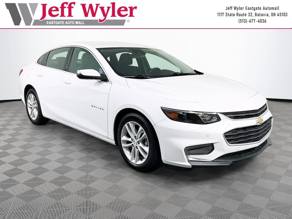 Jeff Wyler Eastgate Auto Mall is excited to offer this beautiful 2018 Chevrolet Malibu Hybrid in Summit White. Well equipped with: Convenience & Technology Package (120-Volt Power Outlet, 3-Spoke Leather-Wrapped Steering Wheel, 6-Speaker Audio System Feature, Driver Information System w/Color Display, Dual USB Charging-Only Ports, Inside Rear-View Auto-Dimming Mirror, Leather-Wrapped Shift Knob, Radio: Chevrolet MyLink AM/FM Stereo w/8" Screen, Remote Vehicle Starter System, SiriusXM Satellite Radio, and Wireless Charging For Devices), Driver Confidence Package (Following Distance Indicator, Forward Collision Alert, Front & Rear Park Assist, Front Pedestrian Braking, IntelliBeam Automatic High-Beam Headlamps, Lane Keep Assist, Low-Speed Forward Automatic Braking, Rear Cross-Traffic Alert, and Side Blind Zone Alert w/Lane Change Alert), Portable Media Connectivity Package (LPO), Preferred Equipment Group 1HY, 17" Aluminum Wheels, 4-Wheel Disc Brakes, 6 Speakers, 6-Way Manual Front Passenger Seat Adjuster, 8-Way Power Driver Seat Adjuster, ABS brakes, Air Conditioning, Alloy wheels, AM/FM radio: SiriusXM, Apple CarPlay/Android Auto, Automatic temperature control, Brake assist, Bumpers: body-color, Compass, Delay-off headlights, Driver door bin, Driver vanity mirror, Dual front impact airbags, Dual front side impact airbags, Electronic Stability Control, Emergency communication system: OnStar and Chevrolet connected services capable, Exterior Parking Camera Rear, Four wheel independent suspension, Front anti-roll bar, Front Bucket Seats, Front Center Armrest w/Storage, Front dual zone A/C, Front License Plate Bracket, Front reading lights, Fully automatic headlights, Heated door mirrors, Illuminated entry, Knee airbag, Low tire pressure warning, Occupant sensing airbag, Outside temperature display, Overhead airbag, Overhead console, Panic alarm, Passenger door bin, Passenger vanity mirror, Power door mirrors, Power Driver Lumbar Control Seat Adjuster, Power driver seat, Power steering, Power windows, Premium Cloth Seat Trim, Radio data system, Radio: Chevrolet MyLink AM/FM Stereo w/7" Screen, Rear anti-roll bar, Rear reading lights, Rear seat center armrest, Rear side impact airbag, Rear window defroster, Remote keyless entry, Security system, Speed control, Split folding rear seat, Steering wheel mounted audio controls, Tachometer, Telescoping steering wheel, Tilt steering wheel, Traction control, Trip computer, Turn signal indicator mirrors, and Variably intermittent wipers. CARFAX One-Owner. Clean CARFAX. Awards: * 2018 KBB.com 10 Best Sedans Under $25,000 * 2018 KBB.com 10 Most Awarded Brands Ask about available certifications. Used vehicles 10 years of age or newer with less than 100,000 miles are eligible for the Wyler Assurance Program, but eligible vehicles must pass our reconditioning process and multi-point inspection. Provided the vehicle passes inspection, vehicles will be eligible for the 6 month/6,000 mile limited warranty. The 6 month/6,000 mile limited warranty is NOT available on AS-IS vehicles, wholesale vehicles, lease buyback/pass-thru vehicles or un-inspected vehicles. Note that this program can also apply to vehicles where the remaining factory coverage is less than 6 months or 6,000 miles. Please check the Federal Trade Commission (FTC) Buyers guide on the vehicle for full details as to whether or not warranty coverage may apply. Contact Dealer for additional details. The Wyler Assurance 6 month/6,000 Mile limited warranty ends 6 months from the date of the Retail Purchase Agreement (BUYERS ORDER) or when the vehicle's odometer registers 6,000 additional miles to the mileage listed on the BUYERS ORDER, whichever comes first. Your Deductible - The warranty holder on your contract pays the first $100 of each covered repair.