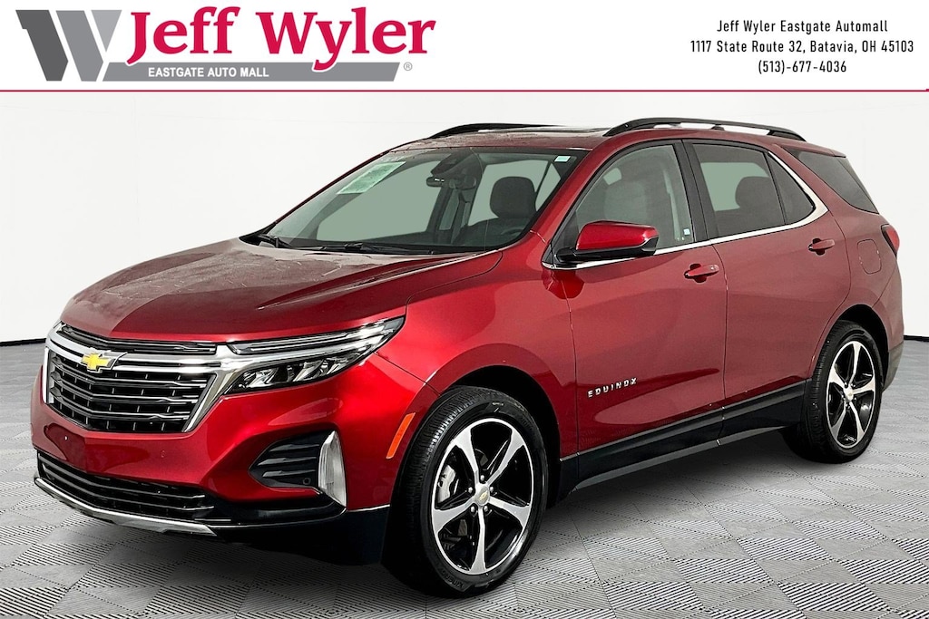 Jeff Wyler Eastgate Auto Mall is delighted to offer this charming 2023 Chevrolet Equinox LT in Radiant Red Tintcoat. Well equipped with: Confidence & Convenience Package, Driver Confidence II Package (Front & Rear Park Assist), Driver Convenience Package (Dual-Zone Automatic Climate Control, Heated Driver & Front Passenger Seats, Rear Power Liftgate, Remote Start, and Wrapped Steering Wheel), Preferred Equipment Group 1LT, Side Blind Zone & Rear Cross Traffic (Lane Change Alert w/Side Blind Zone Alert and Rear Cross Traffic Alert), 17" Aluminum Wheels, 19" Aluminum Wheels, 2 Rear USB Charging-Only Ports, 2 USB Ports & Auxiliary Input Jack, 2-Way Power Driver Lumbar Control Seat Adjuster, 3.50 Final Drive Axle Ratio, 4-Wheel Disc Brakes, 6 Speakers, 6-Speaker Audio System Feature, ABS brakes, Air Conditioning, Alloy wheels, AM/FM radio: SiriusXM, Auto High-beam Headlights, Bluetooth® For Phone, Brake assist, Bumpers: body-color, Compass, Delay-off headlights, Driver 8-Way Power Seat Adjuster, Driver door bin, Driver vanity mirror, Dual front impact airbags, Dual front side impact airbags, Electronic Stability Control, Emergency communication system: OnStar and Chevrolet connected services capable, Four wheel independent suspension, Front anti-roll bar, Front Bucket Seats, Front Center Armrest, Front Passenger 4-Way Manual Seat Adjuster, Front reading lights, Fully automatic headlights, Heated door mirrors, Illuminated entry, Low tire pressure warning, Occupant sensing airbag, Outside temperature display, Overhead airbag, Overhead console, Panic alarm, Passenger door bin, Passenger vanity mirror, Power door mirrors, Power driver seat, Power steering, Power Sunroof, Power windows, Premium audio system: Chevrolet Infotainment 3, Premium Cloth Seat Trim, Radio data system, Radio: Chevrolet Infotainment 3 System w/AM/FM, Rear anti-roll bar, Rear reading lights, Rear seat center armrest, Rear window defroster, Rear window wiper, Remote keyless entry, Roof-Mounted Luggage Rack Side Rails, Security system, SiriusXM Radio, Speed control, Speed-sensing steering, Split folding rear seat, Spoiler, Steering wheel mounted audio controls, Tachometer, Telescoping steering wheel, Tilt steering wheel, Traction control, Trip computer, Variably intermittent wipers, Wheels: 19" Aluminum (LPO), and Wireless Apple CarPlay/Wireless Android Auto. CARFAX One-Owner. Clean CARFAX. Ask about available certifications. Used vehicles 10 years of age or newer with less than 100,000 miles are eligible for the Wyler Assurance Program, but eligible vehicles must pass our reconditioning process and multi-point inspection. Provided the vehicle passes inspection, vehicles will be eligible for the 6 month/6,000 mile limited warranty. The 6 month/6,000 mile limited warranty is NOT available on AS-IS vehicles, wholesale vehicles, lease buyback/pass-thru vehicles or un-inspected vehicles. Note that this program can also apply to vehicles where the remaining factory coverage is less than 6 months or 6,000 miles. Please check the Federal Trade Commission (FTC) Buyers guide on the vehicle for full details as to whether or not warranty coverage may apply. Contact Dealer for additional details. The Wyler Assurance 6 month/6,000 Mile limited warranty ends 6 months from the date of the Retail Purchase Agreement (BUYERS ORDER) or when the vehicle's odometer registers 6,000 additional miles to the mileage listed on the BUYERS ORDER, whichever comes first. Your Deductible - The warranty holder on your contract pays the first $100 of each covered repair.