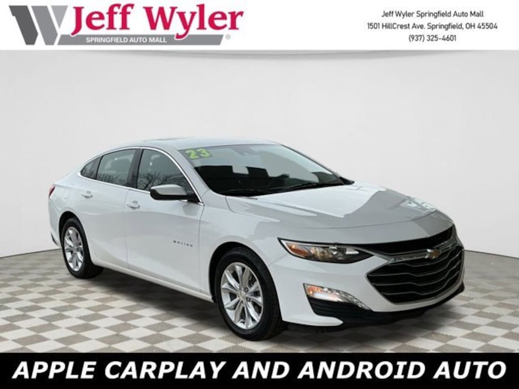 Jeff Wyler Springfield Auto Mall is pumped up to offer this wonderful 2023 Chevrolet Malibu LT in White. Well equipped with: 17 Aluminum Wheels, 4-Wheel Disc Brakes, 6 Speakers, 6-Speaker Audio System Feature, 6-Way Manual Front Passenger Seat Adjuster, 8-Way Power Driver Seat Adjuster, ABS brakes, Air Conditioning, Alloy wheels, AM/FM radio: SiriusXM, Apple CarPlay/Android Auto, Auto High-beam Headlights, Automatic temperature control, Brake assist, Bumpers: body-color, Compass, Delay-off headlights, Driver door bin, Driver vanity mirror, Dual front impact airbags, Dual front side impact airbags, Electronic Stability Control, Emergency communication system: OnStar and Chevrolet connected services capable, Exterior Parking Camera Rear, Four wheel independent suspension, Front anti-roll bar, Front Bucket Seats, Front Center Armrest, Front dual zone A/C, Front reading lights, Fully automatic headlights, Heated door mirrors, Heated Driver & Front Passenger Seats, Heated front seats, Illuminated entry, Knee airbag, Low tire pressure warning, Occupant sensing airbag, Outside temperature display, Overhead airbag, Overhead console, Panic alarm, Passenger door bin, Passenger vanity mirror, Power door mirrors, Power Driver Lumbar Control Seat Adjuster, Power driver seat, Power steering, Power windows, Premium audio system: Chevrolet Infotainment 3 Plus, Premium Cloth Seat Trim, Radio data system, Radio: Chevrolet Infotainment 3 System, Rear anti-roll bar, Rear reading lights, Rear seat center armrest, Rear side impact airbag, Rear window defroster, Remote keyless entry, Security system, SiriusXM Radio, Speed control, Split folding rear seat, Steering wheel mounted audio controls, Tachometer, Telescoping steering wheel, Tilt steering wheel, Traction control, Trip computer, Variably intermittent wipers, Voltmeter, and Wireless Apple CarPlay/Android Auto. Ask about available certifications. Used vehicles 10 years of age or newer with less than 100,000 miles are eligible for the Wyler Assurance Program, but eligible vehicles must pass our reconditioning process and multi-point inspection. Provided the vehicle passes inspection, vehicles will be eligible for the 6 month/6,000 mile limited warranty. The 6 month/6,000 mile limited warranty is NOT available on AS-IS vehicles, wholesale vehicles, lease buyback/pass-thru vehicles or un-inspected vehicles. Note that this program can also apply to vehicles where the remaining factory coverage is less than 6 months or 6,000 miles. Please check the Federal Trade Commission (FTC) Buyers guide on the vehicle for full details as to whether or not warranty coverage may apply. Contact Dealer for additional details. The Wyler Assurance 6 month/6,000 Mile limited warranty ends 6 months from the date of the Retail Purchase Agreement (BUYERS ORDER) or when the vehicle's odometer registers 6,000 additional miles to the mileage listed on the BUYERS ORDER, whichever comes first. Your Deductible - The warranty holder on your contract pays the first $100 of each covered repair.