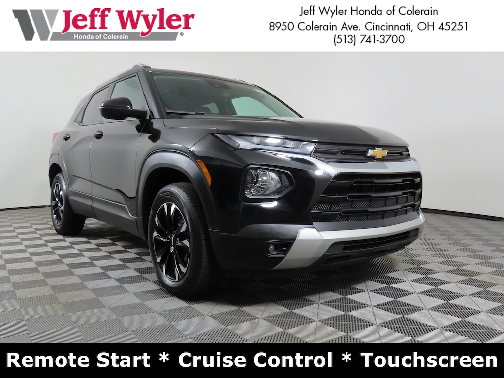 Jeff Wyler Honda of Colerain is excited to offer this gorgeous 2023 Chevrolet TrailBlazer LT in Mosaic Black Metallic. Well equipped with: Preferred Equipment Group 1LT, 2-Way Adjustable Front Head Restraints, 2-Way Power Driver Lumbar Seat Adjuster, 3.17 Axle Ratio, 4-Way Manual Front Passenger Seat Adjuster, 4-Wheel Disc Brakes, 6 Speakers, 6-Speaker Audio System Feature w/Amplifier, 7" Diagonal Color Touchscreen, 8-Way Power Driver Seat Adjuster, ABS brakes, Air Conditioning, Alloy wheels, AM/FM radio: SiriusXM, Auto High-beam Headlights, Brake assist, Bumpers: body-color, Cloth Seat Trim, Compass, Delay-off headlights, Driver door bin, Driver vanity mirror, Dual front impact airbags, Dual front side impact airbags, Electronic Stability Control, Emergency communication system: OnStar and Chevrolet connected services capable, Exterior Parking Camera Rear, Flat-Folding Front Passenger Seatback, Front anti-roll bar, Front Bucket Seats, Front Center Armrest, Front fog lights, Front reading lights, Front wheel independent suspension, Fully automatic headlights, Heated door mirrors, Heated Driver & Front Passenger Seats, Heated front seats, Illuminated entry, Knee airbag, Low tire pressure warning, Occupant sensing airbag, Overhead airbag, Overhead console, Panic alarm, Passenger door bin, Passenger vanity mirror, Power door mirrors, Power driver seat, Power steering, Power windows, Radio data system, Radio: Chevrolet Infotainment 3 System, Rear side impact airbag, Rear window defroster, Rear window wiper, Remote keyless entry, Ride & Handling Suspension, Security system, SiriusXM Radio, Speed control, Split folding rear seat, Spoiler, Steering wheel mounted audio controls, Tachometer, Telescoping steering wheel, Tilt steering wheel, Traction control, Trip computer, Variably intermittent wipers, Wheels: 17" High Gloss Black Machined Aluminum, and Wireless Apple CarPlay/Android Auto.