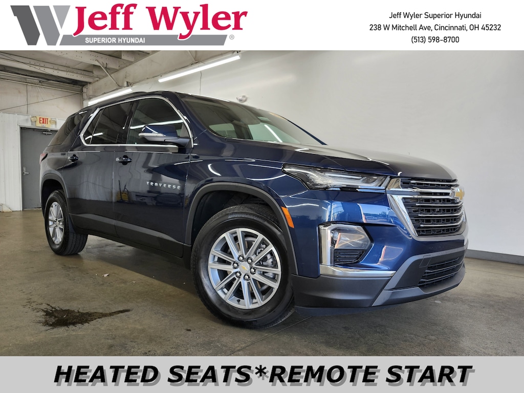 Jeff Wyler Superior Hyundai is excited to offer this wonderful 2023 Chevrolet Traverse LT in Northsky Blue Metallic. Well equipped with: Convenience & Driver Confidence Package (4.2" Multi-Color Enhanced Driver Instrument Display, Heated Driver & Front Passenger Seats, Radio: Chevrolet Infotainment 3 Plus System, Rear Power Liftgate, Remote Start, SiriusXM w/360L, and Universal Home Remote), Floor Liner Package (LPO) (1st & 2nd Row All-Weather Floor Liner (LPO), 3rd Row All-Weather Floor Liner (LPO), and Integrated Cargo Liner (LPO)), Preferred Equipment Group 1LT, 2-Way Manual Front Passenger Seat Adjuster, 3.49 Axle Ratio, 3rd row seats: split-bench, 4-Wheel Disc Brakes, 6 Speakers, 6-Speaker Audio System Feature, 8-Way Power Driver Seat Adjuster, ABS brakes, Air Conditioning, Alloy wheels, AM/FM radio: SiriusXM, Apple CarPlay/Android Auto, Auto High-beam Headlights, Automatic temperature control, Black Roof Rails, Brake assist, Bumpers: body-color, Compass, Delay-off headlights, Driver door bin, Driver vanity mirror, Dual front impact airbags, Dual front side impact airbags, Electronic Stability Control, Emergency communication system, Exterior Parking Camera Rear, Four wheel independent suspension, Front anti-roll bar, Front Bucket Seats, Front Center Armrest, Front dual zone A/C, Front reading lights, Fully automatic headlights, Heated door mirrors, Illuminated entry, Leather steering wheel, Low tire pressure warning, Not Equipped w/Rear Park Assist (060), Occupant sensing airbag, Outside temperature display, Overhead airbag, Overhead console, Panic alarm, Passenger door bin, Passenger vanity mirror, Power door mirrors, Power Driver Lumbar Control, Power driver seat, Power steering, Power windows, Premium Cloth Seat Trim, Radio data system, Radio: Chevrolet Infotainment System AM/FM Stereo, Rear air conditioning, Rear anti-roll bar, Rear reading lights, Rear window defroster, Rear window wiper, Remote keyless entry, Security system, SiriusXM Radio, Speed control, Speed-sensing steering, Spoiler, Steering wheel mounted audio controls, Tachometer, Telescoping steering wheel, Tilt steering wheel, Traction control, Trip computer, Turn signal indicator mirrors, Variably intermittent wipers, Voltmeter, and Wheels: 18" Bright Silver-Painted Aluminum. Clean CARFAX. This sales price excludes tax, title, and dealer fees. While every reasonable effort is made to ensure the accuracy of this information, we are not responsible for any errors or omissions contained on these pages. Used vehicles 10 years of age or newer with less than 100,000 miles are eligible for the Wyler Assurance Program, but eligible vehicles must pass our reconditioning process and multi-point inspection. Provided the vehicle passes inspection, vehicles will be eligible for the 6 month/6,000 mile limited warranty. The 6 month/6,000 mile limited warranty is NOT available on AS-IS vehicles, wholesale vehicles, lease buyback/pass-thru vehicles or un-inspected vehicles. Note that this program can also apply to vehicles where the remaining factory coverage is less than 6 months or 6,000 miles. Please check the Federal Trade Commission (FTC) Buyers guide on the vehicle for full details as to whether or not warranty coverage may apply. Contact Dealer for additional details. The Wyler Assurance 6 month/6,000 Mile limited warranty ends 6 months from the date of the Retail Purchase Agreement (BUYERS ORDER) or when the vehicle's odometer registers 6,000 additional miles to the mileage listed on the BUYERS ORDER, whichever comes first.Your Deductible - The warranty holder on your contract pays the first $100 of each covered repair.