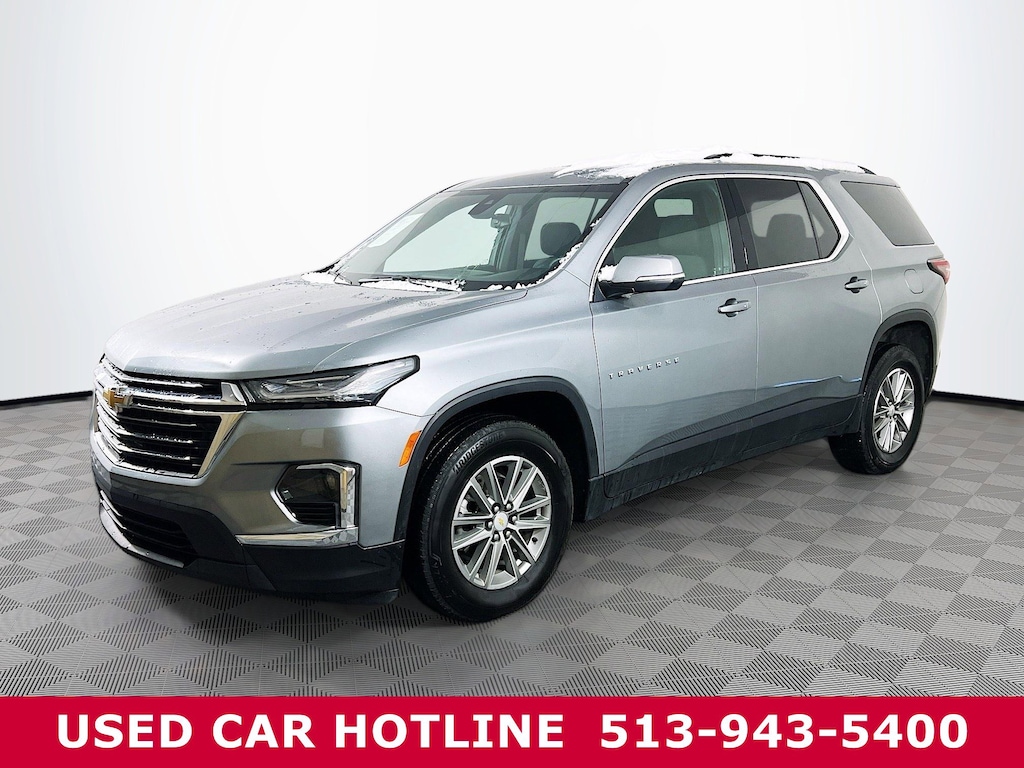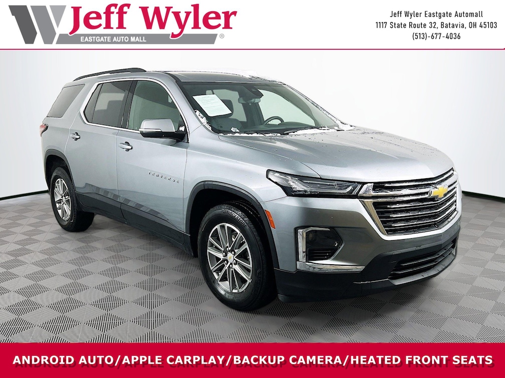 Jeff Wyler Eastgate Auto Mall is delighted to offer this wonderful 2023 Chevrolet Traverse LT in Sterling Gray Metallic. Well equipped with: Convenience & Driver Confidence Package (4.2" Multi-Color Enhanced Driver Instrument Display, Heated Driver & Front Passenger Seats, Radio: Chevrolet Infotainment 3 Plus System, Rear Power Liftgate, Remote Start, SiriusXM w/360L, and Universal Home Remote), Preferred Equipment Group 1LT, Trailering Equipment (Heavy-Duty Cooling System and Trailering Assist Guidelines), 2-Way Manual Front Passenger Seat Adjuster, 3.49 Axle Ratio, 3rd row seats: split-bench, 4-Wheel Disc Brakes, 6 Speakers, 6-Speaker Audio System Feature, 8-Way Power Driver Seat Adjuster, ABS brakes, Air Conditioning, Alloy wheels, AM/FM radio: SiriusXM, Apple CarPlay/Android Auto, Auto High-beam Headlights, Automatic temperature control, Black Roof Rails, Brake assist, Bumpers: body-color, Compass, Delay-off headlights, Driver door bin, Driver vanity mirror, Dual front impact airbags, Dual front side impact airbags, Electronic Stability Control, Emergency communication system, Exterior Parking Camera Rear, Four wheel independent suspension, Front anti-roll bar, Front Bucket Seats, Front Center Armrest, Front dual zone A/C, Front reading lights, Fully automatic headlights, Heated door mirrors, Hitch Guidance w/Hitch View, Illuminated entry, Leather steering wheel, Low tire pressure warning, Occupant sensing airbag, Outside temperature display, Overhead airbag, Overhead console, Panic alarm, Passenger door bin, Passenger vanity mirror, Power door mirrors, Power Driver Lumbar Control, Power driver seat, Power steering, Power windows, Premium Cloth Seat Trim, Radio data system, Radio: Chevrolet Infotainment System AM/FM Stereo, Rear air conditioning, Rear anti-roll bar, Rear reading lights, Rear window defroster, Rear window wiper, Remote keyless entry, Security system, SiriusXM Radio, Speed control, Speed-sensing steering, Spoiler, Steering wheel mounted audio controls, Tachometer, Telescoping steering wheel, Tilt steering wheel, Traction control, Trip computer, Turn signal indicator mirrors, Variably intermittent wipers, Voltmeter, and Wheels: 18" Bright Silver-Painted Aluminum. CARFAX One-Owner. Clean CARFAX. Ask about available certifications. Used vehicles 10 years of age or newer with less than 100,000 miles are eligible for the Wyler Assurance Program, but eligible vehicles must pass our reconditioning process and multi-point inspection. Provided the vehicle passes inspection, vehicles will be eligible for the 6 month/6,000 mile limited warranty. The 6 month/6,000 mile limited warranty is NOT available on AS-IS vehicles, wholesale vehicles, lease buyback/pass-thru vehicles or un-inspected vehicles. Note that this program can also apply to vehicles where the remaining factory coverage is less than 6 months or 6,000 miles. Please check the Federal Trade Commission (FTC) Buyers guide on the vehicle for full details as to whether or not warranty coverage may apply. Contact Dealer for additional details. The Wyler Assurance 6 month/6,000 Mile limited warranty ends 6 months from the date of the Retail Purchase Agreement (BUYERS ORDER) or when the vehicle's odometer registers 6,000 additional miles to the mileage listed on the BUYERS ORDER, whichever comes first. Your Deductible - The warranty holder on your contract pays the first $100 of each covered repair.