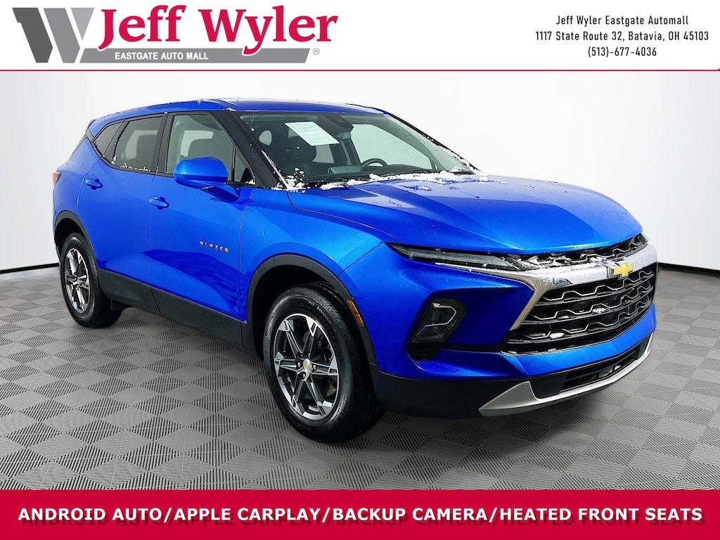 Jeff Wyler Eastgate Auto Mall is delighted to offer this good-looking 2024 Chevrolet Blazer LT in Riptide Blue Metallic. Well equipped with: Floor Liner Package (LPO) (1st & 2nd Row All-Weather Floor Liners (LPO) and Integrated Cargo Liner (LPO)), Preferred Equipment Group 2LT, Trailering Equipment (Hitch Guidance), 170 Amp Alternator, 3.47 Final Drive Axle Ratio, 4-Way Manual Front Passenger Seat Adjuster, 4-Wheel Disc Brakes, 6 Speakers, 6-Speaker Audio System Feature, 8-Way Power Driver Seat Adjuster, ABS brakes, Air Conditioning, Alloy wheels, AM/FM radio: SiriusXM with 360L, Apple CarPlay/Android Auto, Auto High-beam Headlights, Automatic temperature control, Brake assist, Bumpers: body-color, Child-Seat-Sensing Airbag, Compass, Delay-off headlights, Driver door bin, Driver vanity mirror, Dual front impact airbags, Dual front side impact airbags, Electronic Stability Control, Emergency communication system: OnStar and Chevrolet connected services capable, Four wheel independent suspension, Front anti-roll bar, Front Bucket Seats, Front Center Armrest, Front dual zone A/C, Front reading lights, Fully automatic headlights, Heated door mirrors, Heated Driver & Front Passenger Seats, Heated front seats, Illuminated entry, Knee airbag, Leather Shift Knob, Low tire pressure warning, Occupant sensing airbag, Outside temperature display, Overhead airbag, Overhead console, Panic alarm, Passenger door bin, Passenger vanity mirror, Power door mirrors, Power Driver Lumbar Control, Power driver seat, Power steering, Power windows, Premium audio system: Chevrolet Infotainment 3 Plus, Premium Cloth Seat Trim, Radio data system, Radio: Chevrolet Infotainment 3 Plus System, Rear anti-roll bar, Rear reading lights, Rear seat center armrest, Rear window defroster, Rear window wiper, Remote keyless entry, Ride & Handling Suspension, Security system, SiriusXM w/360L, Speed control, Speed-sensing steering, Split folding rear seat, Spoiler, Steering wheel mounted audio controls, Tachometer, Telescoping steering wheel, Tilt steering wheel, Traction control, Trip computer, Variably intermittent wipers, Voltmeter, and Wheels: 18" Grazen Metallic Aluminum. CARFAX One-Owner. Clean CARFAX. Ask about available certifications. Used vehicles 10 years of age or newer with less than 100,000 miles are eligible for the Wyler Assurance Program, but eligible vehicles must pass our reconditioning process and multi-point inspection. Provided the vehicle passes inspection, vehicles will be eligible for the 6 month/6,000 mile limited warranty. The 6 month/6,000 mile limited warranty is NOT available on AS-IS vehicles, wholesale vehicles, lease buyback/pass-thru vehicles or un-inspected vehicles. Note that this program can also apply to vehicles where the remaining factory coverage is less than 6 months or 6,000 miles. Please check the Federal Trade Commission (FTC) Buyers guide on the vehicle for full details as to whether or not warranty coverage may apply. Contact Dealer for additional details. The Wyler Assurance 6 month/6,000 Mile limited warranty ends 6 months from the date of the Retail Purchase Agreement (BUYERS ORDER) or when the vehicle's odometer registers 6,000 additional miles to the mileage listed on the BUYERS ORDER, whichever comes first. Your Deductible - The warranty holder on your contract pays the first $100 of each covered repair.