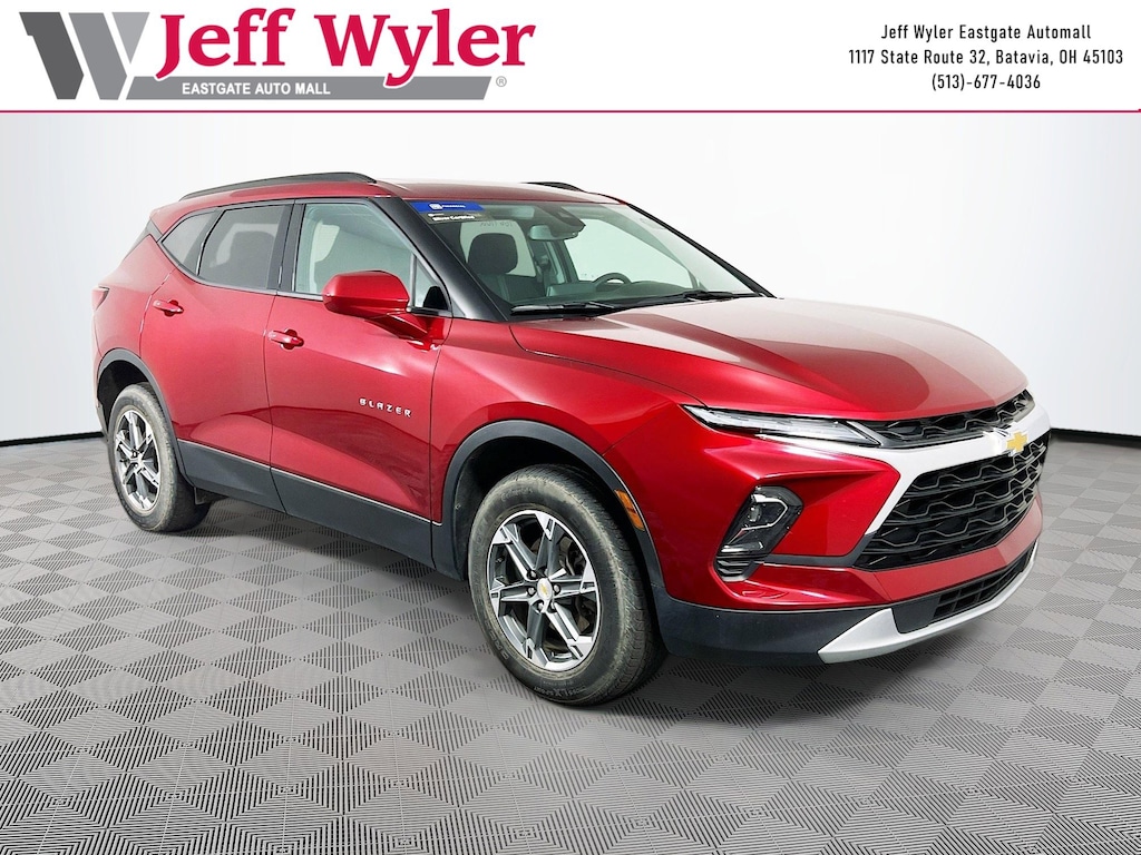 Jeff Wyler Eastgate Auto Mall is pumped up to offer this terrific-looking 2024 Chevrolet Blazer LT in Radiant Red Tintcoat. Well equipped with: Convenience Package (Adaptive Cruise Control, Black Roof-Mounted Side Rails, Enhanced Automatic Emergency Braking, Inside Rear-View Auto-Dimming Mirror, Rear Power Programmable Liftgate, Universal Home Remote, and Wireless Charging), Preferred Equipment Group 2LT, 170 Amp Alternator, 3.47 Final Drive Axle Ratio, 4-Way Manual Front Passenger Seat Adjuster, 4-Wheel Disc Brakes, 6 Speakers, 6-Speaker Audio System Feature, 8-Way Power Driver Seat Adjuster, ABS brakes, Air Conditioning, Alloy wheels, AM/FM radio: SiriusXM with 360L, Apple CarPlay/Android Auto, Auto High-beam Headlights, Automatic temperature control, Brake assist, Bumpers: body-color, Child-Seat-Sensing Airbag, Compass, Delay-off headlights, Driver door bin, Driver vanity mirror, Dual front impact airbags, Dual front side impact airbags, Electronic Stability Control, Emergency communication system: OnStar and Chevrolet connected services capable, Four wheel independent suspension, Front anti-roll bar, Front Bucket Seats, Front Center Armrest, Front dual zone A/C, Front reading lights, Fully automatic headlights, Heated door mirrors, Heated Driver & Front Passenger Seats, Heated front seats, Illuminated entry, Knee airbag, Leather Shift Knob, Low tire pressure warning, Occupant sensing airbag, Outside temperature display, Overhead airbag, Overhead console, Panic alarm, Passenger door bin, Passenger vanity mirror, Power door mirrors, Power Driver Lumbar Control, Power driver seat, Power steering, Power windows, Premium audio system: Chevrolet Infotainment 3 Plus, Premium Cloth Seat Trim, Radio data system, Radio: Chevrolet Infotainment 3 Plus System, Rear anti-roll bar, Rear reading lights, Rear seat center armrest, Rear window defroster, Rear window wiper, Remote keyless entry, Ride & Handling Suspension, Security system, SiriusXM w/360L, Speed control, Speed-sensing steering, Split folding rear seat, Spoiler, Steering wheel mounted audio controls, Tachometer, Telescoping steering wheel, Tilt steering wheel, Traction control, Trip computer, Variably intermittent wipers, Voltmeter, and Wheels: 18" Grazen Metallic Aluminum. Clean CARFAX. Ask about available certifications. Used vehicles 10 years of age or newer with less than 100,000 miles are eligible for the Wyler Assurance Program, but eligible vehicles must pass our reconditioning process and multi-point inspection. Provided the vehicle passes inspection, vehicles will be eligible for the 6 month/6,000 mile limited warranty. The 6 month/6,000 mile limited warranty is NOT available on AS-IS vehicles, wholesale vehicles, lease buyback/pass-thru vehicles or un-inspected vehicles. Note that this program can also apply to vehicles where the remaining factory coverage is less than 6 months or 6,000 miles. Please check the Federal Trade Commission (FTC) Buyers guide on the vehicle for full details as to whether or not warranty coverage may apply. Contact Dealer for additional details. The Wyler Assurance 6 month/6,000 Mile limited warranty ends 6 months from the date of the Retail Purchase Agreement (BUYERS ORDER) or when the vehicle's odometer registers 6,000 additional miles to the mileage listed on the BUYERS ORDER, whichever comes first. Your Deductible - The warranty holder on your contract pays the first $100 of each covered repair.