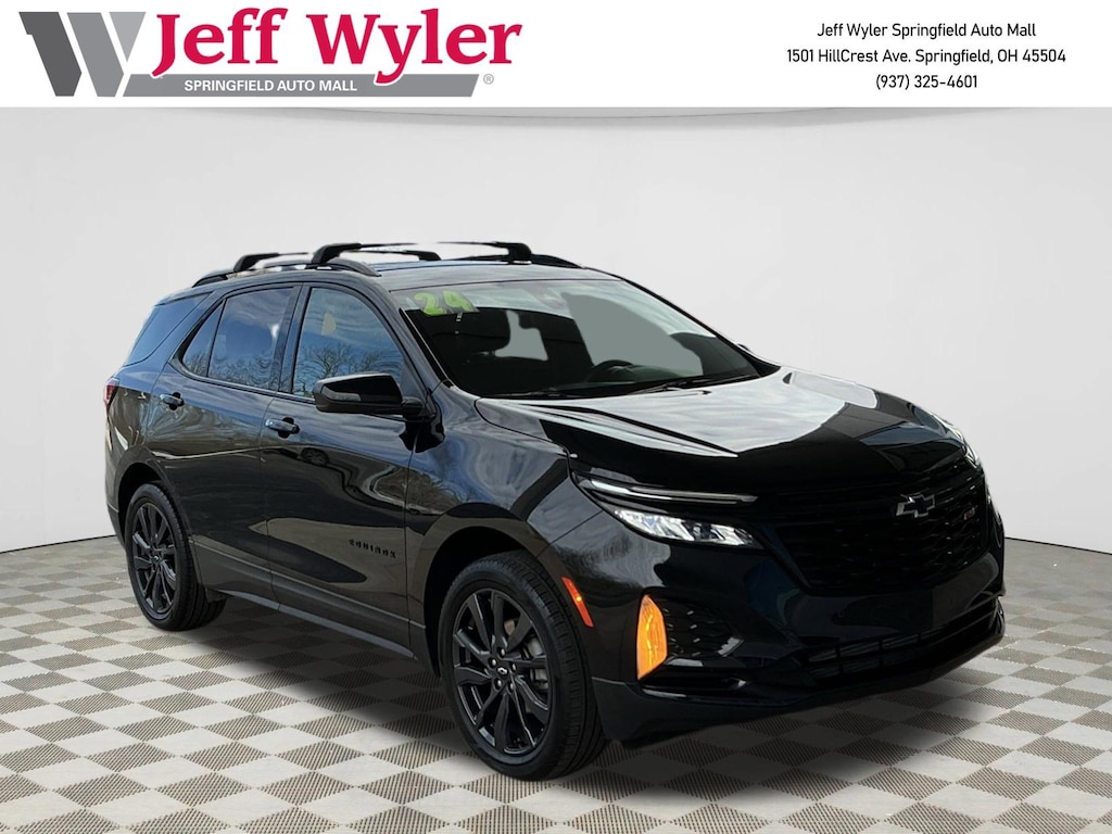 Jeff Wyler Springfield Auto Mall is delighted to offer this terrific-looking 2024 Chevrolet Equinox RS in Mosaic Black Metallic. Well equipped with: Preferred Equipment Group 1RS, 19" Aluminum Wheels, 2 Rear USB Charging-Only Ports, 2 USB Ports & Auxiliary Input Jack, 2-Way Power Driver Lumbar Control Seat Adjuster, 3.87 Final Drive Axle Ratio, 4-Wheel Disc Brakes, 6 Speakers, 6-Speaker Audio System Feature, ABS brakes, Air Conditioning, Alloy wheels, AM/FM radio: SiriusXM, Auto High-beam Headlights, Automatic temperature control, Bluetooth® For Phone, Brake assist, Bumpers: body-color, Compass, Delay-off headlights, Driver 8-Way Power Seat Adjuster, Driver door bin, Driver vanity mirror, Dual front impact airbags, Dual front side impact airbags, Electronic Stability Control, Emergency communication system: OnStar and Chevrolet connected services capable, Four wheel independent suspension, Front anti-roll bar, Front Bucket Seats, Front Center Armrest, Front dual zone A/C, Front Passenger 4-Way Manual Seat Adjuster, Front reading lights, Fully automatic headlights, Heated door mirrors, Heated Driver & Front Passenger Seats, Heated front seats, Illuminated entry, Low tire pressure warning, Occupant sensing airbag, Outside temperature display, Overhead airbag, Overhead console, Panic alarm, Passenger door bin, Passenger vanity mirror, Power door mirrors, Power driver seat, Power Liftgate, Power steering, Power windows, Premium audio system: Chevrolet Infotainment 3, Premium Cloth Seat Trim, Radio data system, Radio: Chevrolet Infotainment 3 System w/AM/FM, Rear anti-roll bar, Rear reading lights, Rear seat center armrest, Rear window defroster, Rear window wiper, Remote keyless entry, Roof rack: rails only, Security system, SiriusXM, Speed control, Speed-sensing steering, Split folding rear seat, Spoiler, Steering wheel mounted audio controls, Tachometer, Telescoping steering wheel, Tilt steering wheel, Traction control, Trip computer, and Variably intermittent wipers. Ask about available certifications. Used vehicles 10 years of age or newer with less than 100,000 miles are eligible for the Wyler Assurance Program, but eligible vehicles must pass our reconditioning process and multi-point inspection. Provided the vehicle passes inspection, vehicles will be eligible for the 6 month/6,000 mile limited warranty. The 6 month/6,000 mile limited warranty is NOT available on AS-IS vehicles, wholesale vehicles, lease buyback/pass-thru vehicles or un-inspected vehicles. Note that this program can also apply to vehicles where the remaining factory coverage is less than 6 months or 6,000 miles. Please check the Federal Trade Commission (FTC) Buyers guide on the vehicle for full details as to whether or not warranty coverage may apply. Contact Dealer for additional details. The Wyler Assurance 6 month/6,000 Mile limited warranty ends 6 months from the date of the Retail Purchase Agreement (BUYERS ORDER) or when the vehicle's odometer registers 6,000 additional miles to the mileage listed on the BUYERS ORDER, whichever comes first. Your Deductible - The warranty holder on your contract pays the first $100 of each covered repair.