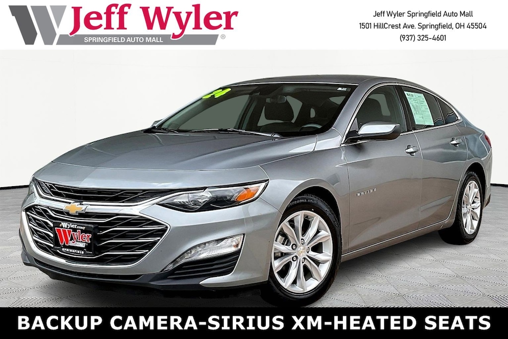 Jeff Wyler Springfield Auto Mall is excited to offer this attractive-looking 2024 Chevrolet Malibu LT in Gray. Well equipped with: 17" Aluminum Wheels, 4-Wheel Disc Brakes, 6 Speakers, 6-Speaker Audio System Feature, 6-Way Manual Front Passenger Seat Adjuster, 8-Way Power Driver Seat Adjuster, ABS brakes, Air Conditioning, Alloy wheels, AM/FM radio: SiriusXM, Auto High-beam Headlights, Automatic temperature control, Brake assist, Bumpers: body-color, Compass, Delay-off headlights, Driver door bin, Driver vanity mirror, Dual front impact airbags, Dual front side impact airbags, Electronic Stability Control, Emergency communication system: OnStar and Chevrolet connected services capable, Exterior Parking Camera Rear, Four wheel independent suspension, Front anti-roll bar, Front Bucket Seats, Front Center Armrest, Front dual zone A/C, Front reading lights, Fully automatic headlights, Heated door mirrors, Heated Driver & Front Passenger Seats, Heated front seats, Illuminated entry, Knee airbag, Low tire pressure warning, Occupant sensing airbag, Outside temperature display, Overhead airbag, Overhead console, Panic alarm, Passenger door bin, Passenger vanity mirror, Power door mirrors, Power Driver Lumbar Control Seat Adjuster, Power driver seat, Power steering, Power windows, Premium audio system: Chevrolet Infotainment 3 Plus, Premium Cloth Seat Trim, Radio data system, Radio: Chevrolet Infotainment 3 System, Rear anti-roll bar, Rear reading lights, Rear seat center armrest, Rear side impact airbag, Rear window defroster, Remote keyless entry, Security system, SiriusXM, Speed control, Split folding rear seat, Steering wheel mounted audio controls, Tachometer, Telescoping steering wheel, Tilt steering wheel, Traction control, Trip computer, Variably intermittent wipers, Voltmeter, and Wireless Apple CarPlay/Android Auto. Ask about available certifications. Used vehicles 10 years of age or newer with less than 100,000 miles are eligible for the Wyler Assurance Program, but eligible vehicles must pass our reconditioning process and multi-point inspection. Provided the vehicle passes inspection, vehicles will be eligible for the 6 month/6,000 mile limited warranty. The 6 month/6,000 mile limited warranty is NOT available on AS-IS vehicles, wholesale vehicles, lease buyback/pass-thru vehicles or un-inspected vehicles. Note that this program can also apply to vehicles where the remaining factory coverage is less than 6 months or 6,000 miles. Please check the Federal Trade Commission (FTC) Buyers guide on the vehicle for full details as to whether or not warranty coverage may apply. Contact Dealer for additional details. The Wyler Assurance 6 month/6,000 Mile limited warranty ends 6 months from the date of the Retail Purchase Agreement (BUYERS ORDER) or when the vehicle's odometer registers 6,000 additional miles to the mileage listed on the BUYERS ORDER, whichever comes first. Your Deductible - The warranty holder on your contract pays the first $100 of each covered repair.