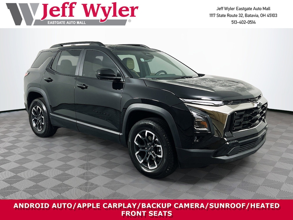 Jeff Wyler Eastgate Auto Mall is very proud to offer this fantastic-looking 2026 Chevrolet Equinox ACTIV in Mosaic Black Metallic. Well equipped with: Floor Liner Package (LPO) (All-Weather Floor Liners (LPO), Cargo Mat, and Second Row All-Weather Mat (LPO)), Preferred Equipment Group KDZ, Safety & Technology Package (Front Fog Lamps, HD Surround Vision, Rear Pedestrian Alert, and Traffic Sign Recognition), 2-Way Power Driver Lumbar Control Seat Adjuster, 3.47 Final Drive Axle Ratio, 4-Wheel Disc Brakes, 6 Speakers, ABS brakes, Air Conditioning, Alloy wheels, AM/FM radio: SiriusXM, Auto High-beam Headlights, Automatic temperature control, Brake assist, Bumpers: body-color, Compass, Delay-off headlights, Driver 8-Way Power Seat Adjuster, Driver door bin, Driver vanity mirror, Dual front impact airbags, Dual front side impact airbags, Electronic Stability Control, Emergency communication system: OnStar and Chevrolet connected services capable, Four wheel independent suspension, Front anti-roll bar, Front Bucket Seats, Front Center Armrest, Front dual zone A/C, Front Passenger 4-Way Manual Seat Adjuster, Front reading lights, Fully automatic headlights, Garage door transmitter, Heated door mirrors, Heated Driver & Front Passenger Seats, Heated front seats, Heated steering wheel, Illuminated entry, Low tire pressure warning, Navigation System, Occupant sensing airbag, Outside temperature display, Overhead airbag, Overhead console, Panic alarm, Passenger door bin, Passenger vanity mirror, Power door mirrors, Power driver seat, Power Dual Glass Panoramic Sliding Sunroof, Power Liftgate, Power steering, Power windows, Premium audio system: Chevrolet Infotainment 3 Plus, Radio data system, Radio: 11.3" Diagonal Advanced Color LCD Display, Rain sensing wipers, Rear anti-roll bar, Rear Camera Mirror Washer, Rear reading lights, Rear seat center armrest, Rear window defroster, Rear window wiper, Remote keyless entry, Security system, SiriusXM w/360L Trial Subscription, Speed control, Speed-sensing steering, Split folding rear seat, Spoiler, Steering wheel mounted audio controls, Sueded Microfiber Seat Trim, Tachometer, Telescoping steering wheel, Tilt steering wheel, Traction control, Trip computer, Variably intermittent wipers, and Wheels: 17" Dark Android Machined-Face Aluminum. CARFAX One-Owner. Clean CARFAX. Ask about available certifications. Used vehicles 10 years of age or newer with less than 100,000 miles are eligible for the Wyler Assurance Program, but eligible vehicles must pass our reconditioning process and multi-point inspection. Provided the vehicle passes inspection, vehicles will be eligible for the 6 month/6,000 mile limited warranty. The 6 month/6,000 mile limited warranty is NOT available on AS-IS vehicles, wholesale vehicles, lease buyback/pass-thru vehicles or un-inspected vehicles. Note that this program can also apply to vehicles where the remaining factory coverage is less than 6 months or 6,000 miles. Please check the Federal Trade Commission (FTC) Buyers guide on the vehicle for full details as to whether or not warranty coverage may apply. Contact Dealer for additional details. The Wyler Assurance 6 month/6,000 Mile limited warranty ends 6 months from the date of the Retail Purchase Agreement (BUYERS ORDER) or when the vehicle's odometer registers 6,000 additional miles to the mileage listed on the BUYERS ORDER, whichever comes first. Your Deductible - The warranty holder on your contract pays the first $100 of each covered repair.
