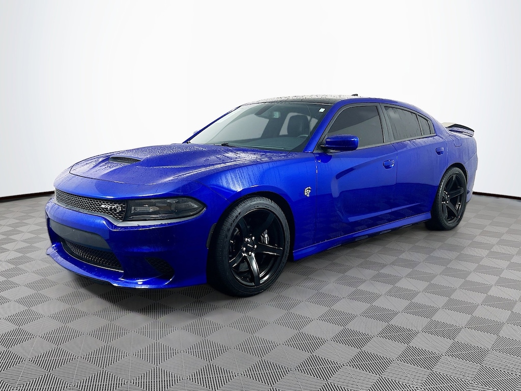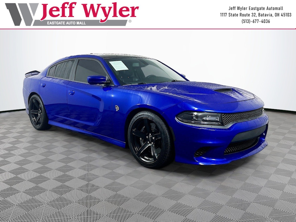 Jeff Wyler Eastgate Auto Mall is pleased to offer this superb 2018 Dodge Charger SRT Hellcat in Indigo Blue. Well equipped with: Power Convenience Group (Power Driver/Passenger 4-Way Lumbar Adjust, Power Front Driver/Passenger Seats, and Power Tilt/Telescope Steering Column), Quick Order Package 23T, 4-Wheel Disc Brakes, 6 Speakers, ABS brakes, Air Conditioning, Alloy wheels, AM/FM radio: SiriusXM, Anti-whiplash front head restraints, Apple CarPlay/Android Auto, Audio memory, Auto-dimming door mirrors, Auto-dimming Rear-View mirror, Automatic temperature control, Black Painted Roof, Brake assist, Brake Calipers - Black, Bumpers: body-color, Compass, Delay-off headlights, Driver door bin, Driver vanity mirror, Dual front impact airbags, Dual front side impact airbags, Electronic Stability Control, Emergency communication system: SiriusXM Guardian, Floormats Front/Rear Left, Floormats Front/Rear Right, Four wheel independent suspension, Front anti-roll bar, Front Bucket Seats, Front Center Armrest, Front dual zone A/C, Front reading lights, Fully automatic headlights, Garage door transmitter: HomeLink, Heated 2nd Row Seats, Heated door mirrors, Heated Front Seats, Heated front seats, Heated rear seats, Heated Steering Wheel, Heated steering wheel, Hellcat Logo Laguna Leather Seat, High intensity discharge headlights: Bi-Xenon, Illuminated entry, Knee airbag, Leather Shift Knob, Leather Trim Seats, Low tire pressure warning, Memory seat, Navigation System, Occupant sensing airbag, Outside temperature display, Overhead airbag, Overhead console, Panic alarm, ParkView Rear Back-Up Camera, Passenger door bin, Passenger vanity mirror, Power 4-Way Driver Lumbar Adjust, Power 8-Way Driver Seat, Power door mirrors, Power driver seat, Power steering, Power windows, Radio data system, Radio: Uconnect 4C Nav w/8.4" Display, Radio/Driver Seat/Mirrors Memory, Rear anti-roll bar, Rear reading lights, Rear window defroster, Remote keyless entry, Security system, Speed control, Speed-Sensitive Wipers, Split folding rear seat, Spoiler, Sport steering wheel, Steering wheel mounted audio controls, Tachometer, Telescoping steering wheel, Tilt steering wheel, Traction control, Trip computer, Variably intermittent wipers, Ventilated Front Seats, Ventilated front seats, and Wheels: 20" x 9.5" SRT Lowgloss Black Performance. Ask about available certifications. Used vehicles 10 years of age or newer with less than 100,000 miles are eligible for the Wyler Assurance Program, but eligible vehicles must pass our reconditioning process and multi-point inspection. Provided the vehicle passes inspection, vehicles will be eligible for the 6 month/6,000 mile limited warranty. The 6 month/6,000 mile limited warranty is NOT available on AS-IS vehicles, wholesale vehicles, lease buyback/pass-thru vehicles or un-inspected vehicles. Note that this program can also apply to vehicles where the remaining factory coverage is less than 6 months or 6,000 miles. Please check the Federal Trade Commission (FTC) Buyers guide on the vehicle for full details as to whether or not warranty coverage may apply. Contact Dealer for additional details. The Wyler Assurance 6 month/6,000 Mile limited warranty ends 6 months from the date of the Retail Purchase Agreement (BUYERS ORDER) or when the vehicle's odometer registers 6,000 additional miles to the mileage listed on the BUYERS ORDER, whichever comes first. Your Deductible - The warranty holder on your contract pays the first $100 of each covered repair.