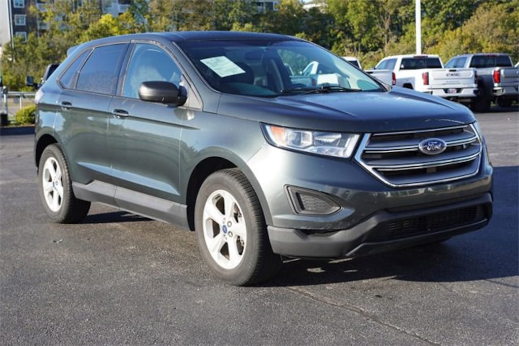 Jeff Wyler Florence Buick GMC is pumped up to offer this stunning 2015 Ford Edge SE in Guard Metallic. Equipment Group 100A, Delay-off headlights, Exterior Parking Camera Rear, Fully automatic headlights, Illuminated entry, Remote keyless entry, Spoiler, Steering wheel mounted audio controls, SYNC, Wheels: 18 Aluminum Painted Sparkle Silver, 3.16 Axle Ratio, 4-Wheel Disc Brakes, 6 Speakers, ABS brakes, Air Conditioning, Alloy wheels, AM/FM radio, AM/FM Stereo w/Single CD, Brake assist, Bumpers: body-color, CD player, Cloth Bucket Seats, Compass, Driver door bin, Driver vanity mirror, Dual front impact airbags, Dual front side impact airbags, Electronic Stability Control, Emergency communication system, Four wheel independent suspension, Front anti-roll bar, Front Bucket Seats, Front Center Armrest w/Storage, Front reading lights, Knee airbag, Leather Shift Knob, Low tire pressure warning, Occupant sensing airbag, Outside temperature display, Overhead airbag, Overhead console, Panic alarm, Passenger door bin, Passenger vanity mirror, Power door mirrors, Power steering, Power windows, Rear anti-roll bar, Rear reading lights, Rear seat center armrest, Rear window defroster, Rear window wiper, Speed control, Speed-Sensitive Wipers, Split folding rear seat, Tachometer, Telescoping steering wheel, Tilt steering wheel, Traction control, Trip computer, and Variably intermittent wipers Our PRE-OWNED vehicles are put through a rigorous 167- POINT QUALITY ASSURANCE INSPECTION along with an average amount of over $1,400.00 SPENT to recondition each vehicle so we can be sure to deliver you the highest quality vehicle like you deserve! ***ONLINE PRICE DOES NOT INCLUDE WYLER FAMILY FIRST PACKAGE*** Stop by 1154 Burlington Pike Florence KY 41402to see for yourself, or give us a call @ 859-525-8001 to schedule your test drive!