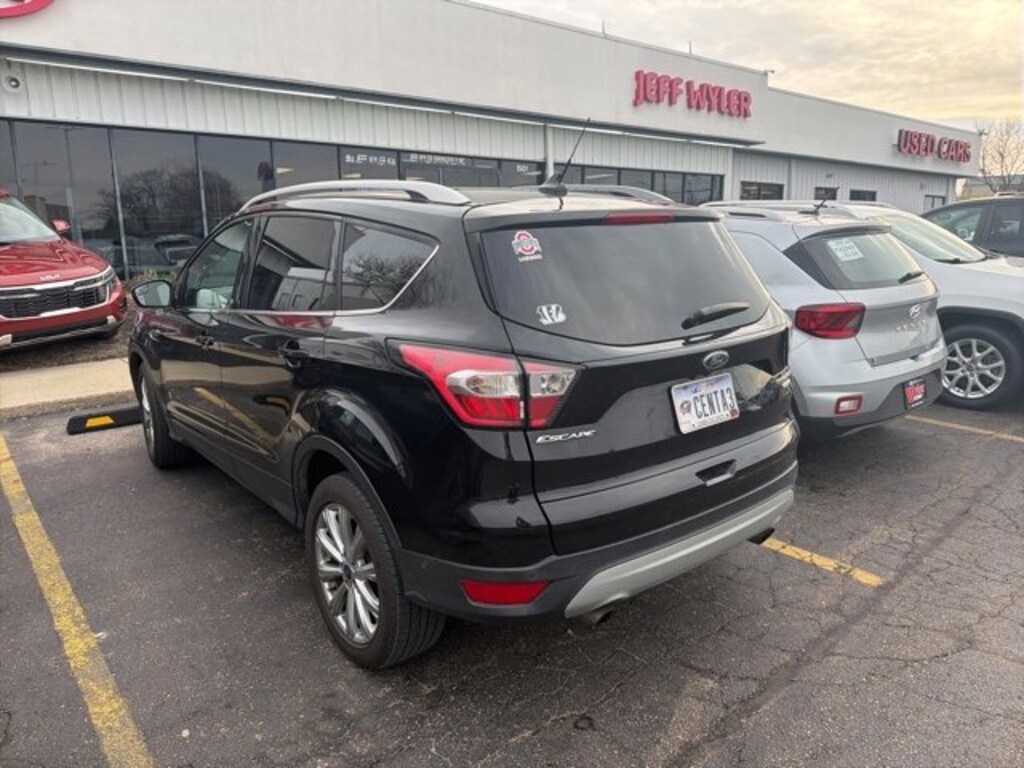 Jeff Wyler Springfield Auto Mall is pleased to offer this fantastic-looking 2018 Ford Escape Titanium in Shadow Black. Well equipped with: Equipment Group 400A, 10 Speakers, 3.07 Axle Ratio, 4-Wheel Disc Brakes, ABS brakes, Air Conditioning, Alloy wheels, AM/FM radio: SiriusXM, AppLink/Apple CarPlay and Android Auto, Auto-dimming Rear-View mirror, Automatic temperature control, Brake assist, Bumpers: body-color, CD player, Compass, Delay-off headlights, Driver door bin, Driver vanity mirror, Dual front impact airbags, Dual front side impact airbags, Electronic Stability Control, Emergency communication system: SYNC 3 911 Assist, Exterior Parking Camera Rear, Four wheel independent suspension, Front anti-roll bar, Front Bucket Seats, Front Center Armrest, Front dual zone A/C, Front fog lights, Front reading lights, Fully automatic headlights, Garage door transmitter, Heated door mirrors, Heated front seats, Heated Leather-Trimmed Front Bucket Seats, Heated steering wheel, High-Intensity Discharge Headlights, Illuminated entry, Knee airbag, Leather Shift Knob, Low tire pressure warning, Memory seat, Navigation System, Occupant sensing airbag, Outside temperature display, Overhead airbag, Overhead console, Panic alarm, Passenger door bin, Passenger vanity mirror, Power door mirrors, Power driver seat, Power Liftgate, Power passenger seat, Power steering, Power windows, Radio data system, Radio: AM/FM Stereo w/Single-CD/MP3 Player, Rear anti-roll bar, Rear reading lights, Rear seat center armrest, Rear window defroster, Rear window wiper, Remote keyless entry, Roof rack: rails only, Security system, Speed control, Speed-sensing steering, Split folding rear seat, Steering wheel mounted audio controls, SYNC 3 Communications & Entertainment System, SYNC Connect, Tachometer, Telescoping steering wheel, Tilt steering wheel, Traction control, Trip computer, Turn signal indicator mirrors, Variably intermittent wipers, Voice-Activated Touchscreen Navigation System, and Wheels: 18 Sparkle Silver-Painted Aluminum. Awards:* 2018 KBB.com 10 Most Awarded Brands * 2018 KBB.com Brand Image Awards Ask about available certifications. Used vehicles 10 years of age or newer with less than 100,000 miles are eligible for the Wyler Assurance Program, but eligible vehicles must pass our reconditioning process and multi-point inspection. Provided the vehicle passes inspection, vehicles will be eligible for the 6 month/6,000 mile limited warranty. The 6 month/6,000 mile limited warranty is NOT available on AS-IS vehicles, wholesale vehicles, lease buyback/pass-thru vehicles or un-inspected vehicles. Note that this program can also apply to vehicles where the remaining factory coverage is less than 6 months or 6,000 miles. Please check the Federal Trade Commission (FTC) Buyers guide on the vehicle for full details as to whether or not warranty coverage may apply. Contact Dealer for additional details. The Wyler Assurance 6 month/6,000 Mile limited warranty ends 6 months from the date of the Retail Purchase Agreement (BUYERS ORDER) or when the vehicle's odometer registers 6,000 additional miles to the mileage listed on the BUYERS ORDER, whichever comes first. Your Deductible - The warranty holder on your contract pays the first $100 of each covered repair.