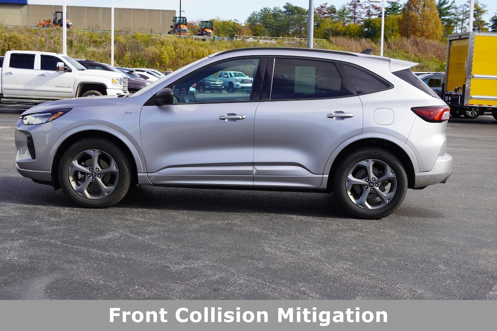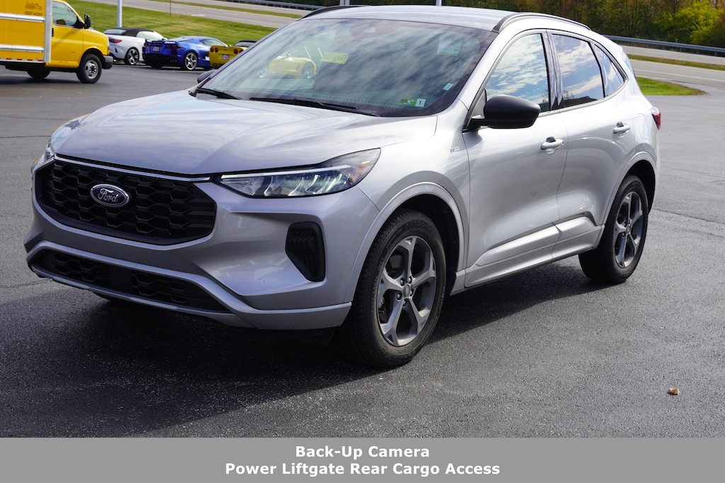 Jeff Wyler Florence Buick GMC is pumped up to offer this handsome-looking 2024 Ford Escape ST-Line in Silver Metallic. Cold Weather Package (Heated Front Row Seats, Heated Sideview Mirrors, Heated Steering Wheel, and Remote Starter System), Equipment Group 300A, 6 Speakers, Alloy wheels, AM/FM radio: SiriusXM, Auto High-beam Headlights, Automatic temperature control, Bumpers: body-color, Delay-off headlights, Exterior Parking Camera Rear, Front dual zone A/C, Fully automatic headlights, Illuminated entry, Outside temperature display, Power door mirrors, Power driver seat, Power Liftgate, Radio data system, Remote keyless entry, Spoiler, Sport steering wheel, Steering wheel mounted audio controls, SYNC 4, Telescoping steering wheel, Tilt steering wheel, Vinyl/Cloth Front Sport Contour Bucket Seats, Wheels: 18 Rock Metallic Painted Aluminum, 3.81 Axle Ratio, 4-Wheel Disc Brakes, ABS brakes, Air Conditioning, AM/FM Stereo, Brake assist, Compass, Driver door bin, Driver vanity mirror, Dual front impact airbags, Dual front side impact airbags, Electronic Stability Control, Emergency communication system: SYNC 4 911 Assist, FordPass Connect, Four wheel independent suspension, Front anti-roll bar, Front Bucket Seats, Front Center Armrest, Front reading lights, Knee airbag, Low tire pressure warning, Occupant sensing airbag, Overhead airbag, Overhead console, Panic alarm, Passenger door bin, Passenger vanity mirror, Power steering, Power windows, Rear anti-roll bar, Rear reading lights, Rear seat center armrest, Rear window defroster, Rear window wiper, Roof rack: rails only, Speed control, Speed-sensing steering, Speed-Sensitive Wipers, Split folding rear seat, Tachometer, Traction control, Trip computer, and Variably intermittent wipers Our PRE-OWNED vehicles are put through a rigorous 167- POINT QUALITY ASSURANCE INSPECTION along with an average amount of over $1,400.00 SPENT to recondition each vehicle so we can be sure to deliver you the highest quality vehicle like you deserve! ***ONLINE PRICE DOES NOT INCLUDE WYLER FAMILY FIRST PACKAGE*** Stop by 1154 Burlington Pike Florence KY 41402to see for yourself, or give us a call @ 859-525-8001 to schedule your test drive!