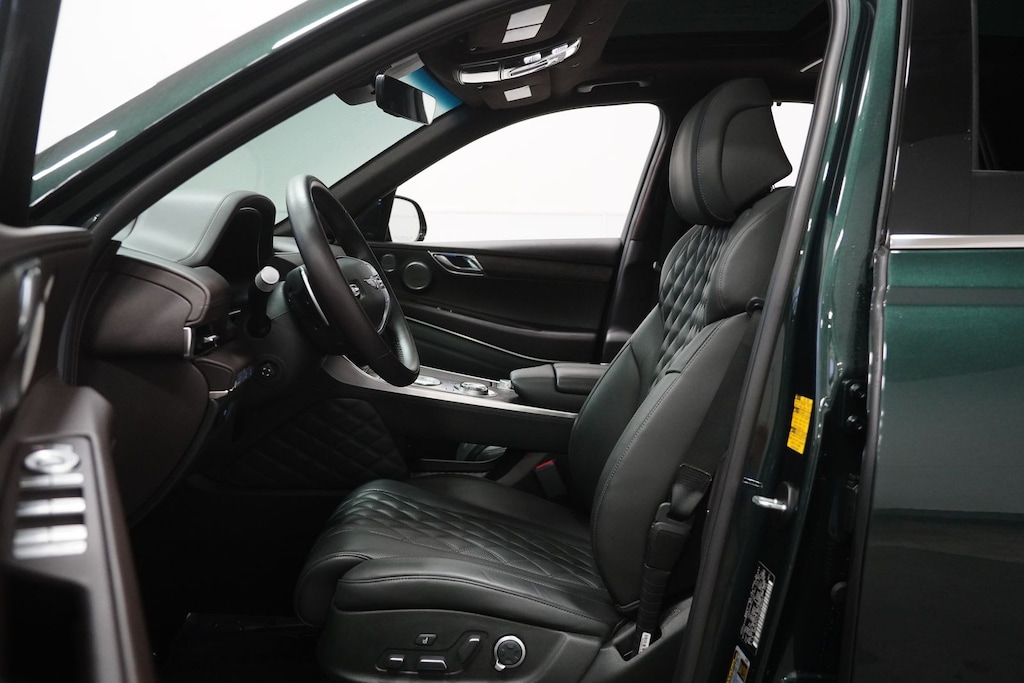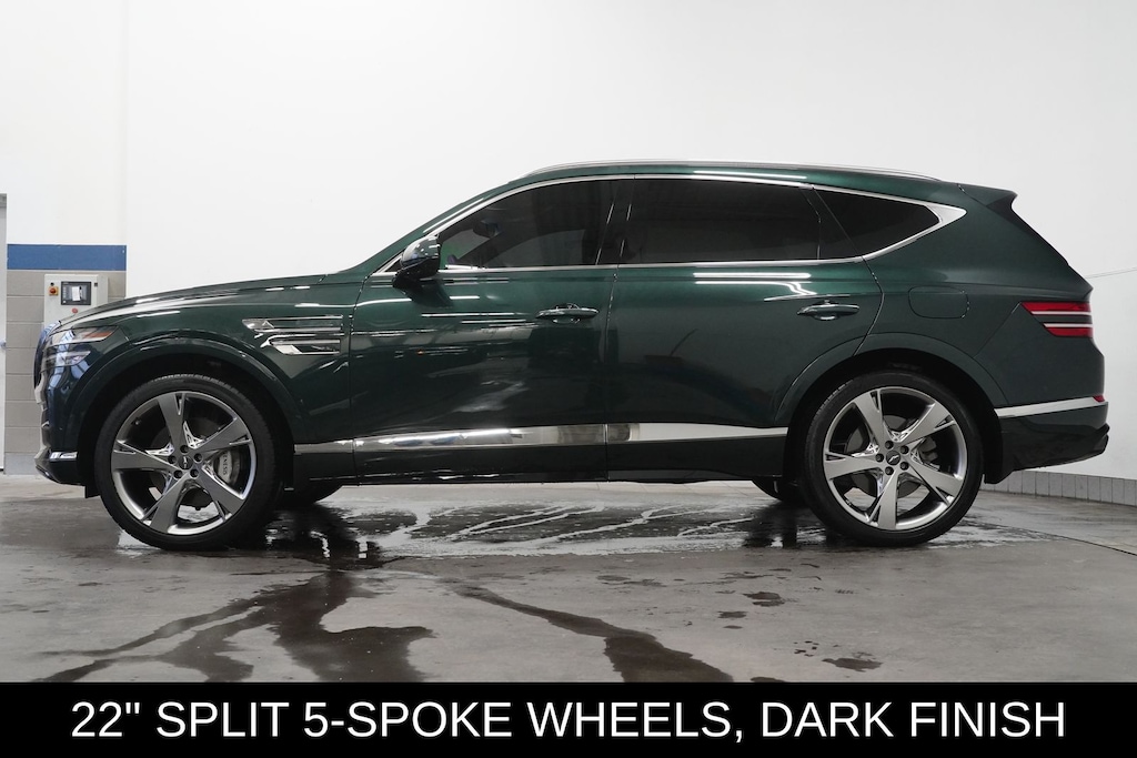 CARFAX One-Owner. Clean CARFAX. Cardiff Green 2022 Genesis GV80 3.5T Prestige Signature AWD 8-Speed Automatic 3.5L DOHC ABS brakes, Adventure Package, Alloy wheels, Compass, Electronic Stability Control, Front dual zone A/C, Heated & Ventilated Front Bucket Seats, Heated door mirrors, Heated front seats, Heated rear seats, Heated steering wheel, Illuminated entry, Low tire pressure warning, Nappa Leather Seating Surfaces, Navigation System, Power Liftgate, Power moonroof, Radio: AM/FM/SiriusXM/HD Lexicon Prem Audio System, Rear Bumper Applique, Remote keyless entry, Roadside Assistance Kit, Tow Hitch, Traction control, Ventilated front seats, Ventilated rear seats, Wheels: 22" x 9.5J Dark Finish Split 5-Spoke.