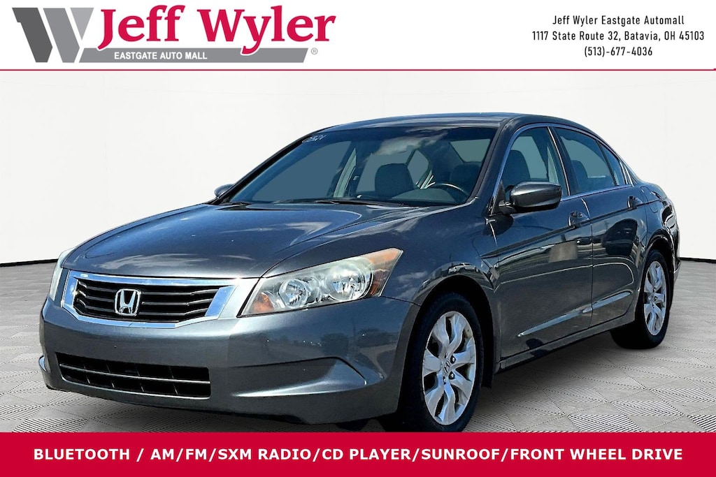 Jeff Wyler Eastgate Auto Mall is proud to offer this charming 2008 Honda Accord EX-L in Gray. Well equipped with: 17" Alloy Wheels, 270-Watt AM/FM/6-Disc In-Dash/XM Satellite Radio, 4-Wheel Disc Brakes, 7 Speakers, ABS brakes, Air Conditioning, Alloy wheels, AM/FM radio: XM, Anti-whiplash front head restraints, Auto-dimming Rear-View mirror, Automatic temperature control, Brake assist, Bumpers: body-color, CD player, Compass, Delay-off headlights, Driver door bin, Driver vanity mirror, Dual front impact airbags, Dual front side impact airbags, Electronic Stability Control, Four wheel independent suspension, Front anti-roll bar, Front Bucket Seats, Front Center Armrest, Front dual zone A/C, Front reading lights, Fully automatic headlights, Heated door mirrors, Heated Front Bucket Seats, Heated front seats, Illuminated entry, Leather-Trimmed Seat Trim, Low tire pressure warning, Occupant sensing airbag, Outside temperature display, Overhead airbag, Overhead console, Panic alarm, Passenger door bin, Passenger vanity mirror, Power door mirrors, Power driver seat, Power moonroof, Power steering, Power windows, Radio data system, Rear anti-roll bar, Rear seat center armrest, Rear window defroster, Remote keyless entry, Security system, Speed control, Speed-sensing steering, Speed-Sensitive Wipers, Steering wheel mounted audio controls, Tachometer, Telescoping steering wheel, Tilt steering wheel, Traction control, Variably intermittent wipers, and XM Satellite Radio. CARFAX One-Owner. Reviews: * The 2008 Honda Accord Coupe straddles the sporty-or-sensible divide as well as any car in its segment. Itâs quick and responsive enough to satisfy all but the hard-core enthusiasts, and its rear seat and trunk are large enough that it makes a great daily driver. Source: KBB.comAwards: * 2008 KBB.com Brand Image AwardsKelley Blue Book Brand Image Awards are based on the Brand Watch(tm) study from Kelley Blue Book Market Intelligence. Award calculated among non-luxury shoppers. For more information, visit www.kbb.com. Kelley Blue Book is a registered trademark of Kelley Blue Book Co., Inc. Ask about available certifications. Used vehicles 10 years of age or newer with less than 100,000 miles are eligible for the Wyler Assurance Program, but eligible vehicles must pass our reconditioning process and multi-point inspection. Provided the vehicle passes inspection, vehicles will be eligible for the 6 month/6,000 mile limited warranty. The 6 month/6,000 mile limited warranty is NOT available on AS-IS vehicles, wholesale vehicles, lease buyback/pass-thru vehicles or un-inspected vehicles. Note that this program can also apply to vehicles where the remaining factory coverage is less than 6 months or 6,000 miles. Please check the Federal Trade Commission (FTC) Buyers guide on the vehicle for full details as to whether or not warranty coverage may apply. Contact Dealer for additional details. The Wyler Assurance 6 month/6,000 Mile limited warranty ends 6 months from the date of the Retail Purchase Agreement (BUYERS ORDER) or when the vehicle's odometer registers 6,000 additional miles to the mileage listed on the BUYERS ORDER, whichever comes first. Your Deductible - The warranty holder on your contract pays the first $100 of each covered repair.