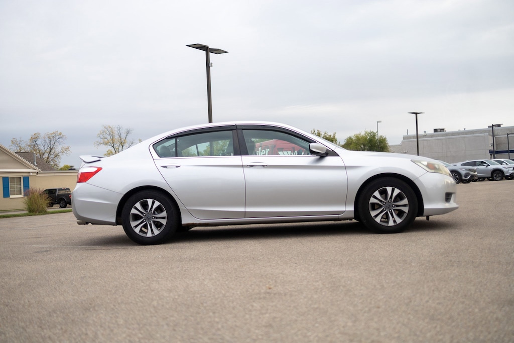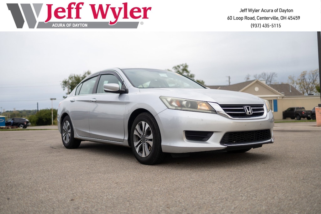 Jeff Wyler Acura of Dayton is very proud to offer this superb 2013 Honda Accord LX in Silver. Cloth, 16" Alloy Wheels, 160-Watt AM/FM/CD Audio System, 4 Speakers, 4-Wheel Disc Brakes, ABS brakes, Air Conditioning, Alloy wheels, AM/FM radio, Automatic temperature control, Brake assist, Bumpers: body-color, CD player, Cloth Seat Trim, Delay-off headlights, Driver door bin, Driver vanity mirror, Dual front impact airbags, Dual front side impact airbags, Electronic Stability Control, Exterior Parking Camera Rear, Four wheel independent suspension, Front anti-roll bar, Front Bucket Seats, Front Center Armrest, Front dual zone A/C, Front reading lights, Fully automatic headlights, Illuminated entry, Low tire pressure warning, Occupant sensing airbag, Outside temperature display, Overhead airbag, Overhead console, Panic alarm, Passenger door bin, Passenger vanity mirror, Power door mirrors, Power steering, Power windows, Radio data system, Rear anti-roll bar, Rear seat center armrest, Rear window defroster, Remote keyless entry, Security system, Speed control, Speed-sensing steering, Speed-Sensitive Wipers, Steering wheel mounted audio controls, Tachometer, Telescoping steering wheel, Tilt steering wheel, Traction control, Trip computer, and Variably intermittent wipers Our PRE-OWNED vehicles are put through a rigorous 167- POINT QUALITY ASSURANCE INSPECTION along with an average amount of over $1,400.00 SPENT to recondition each vehicle so we can be sure to deliver you the highest quality vehicle like you deserve! ***ONLINE PRICE DOES NOT INCLUDE WYLER FAMILY FIRST PACKAGE*** Stop by 4136 Shelbyville Road to see for yourself, or give us a call @ 502-897-3151 to schedule your test drive! Clean CARFAX.
