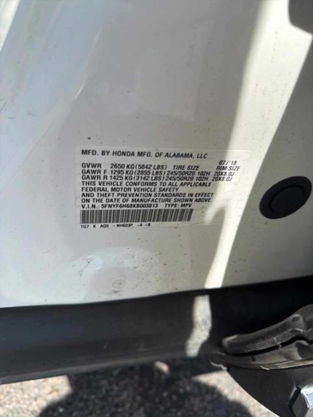 - 5FNYF6H68KB003813