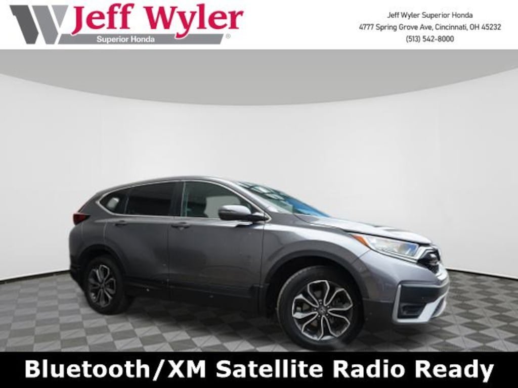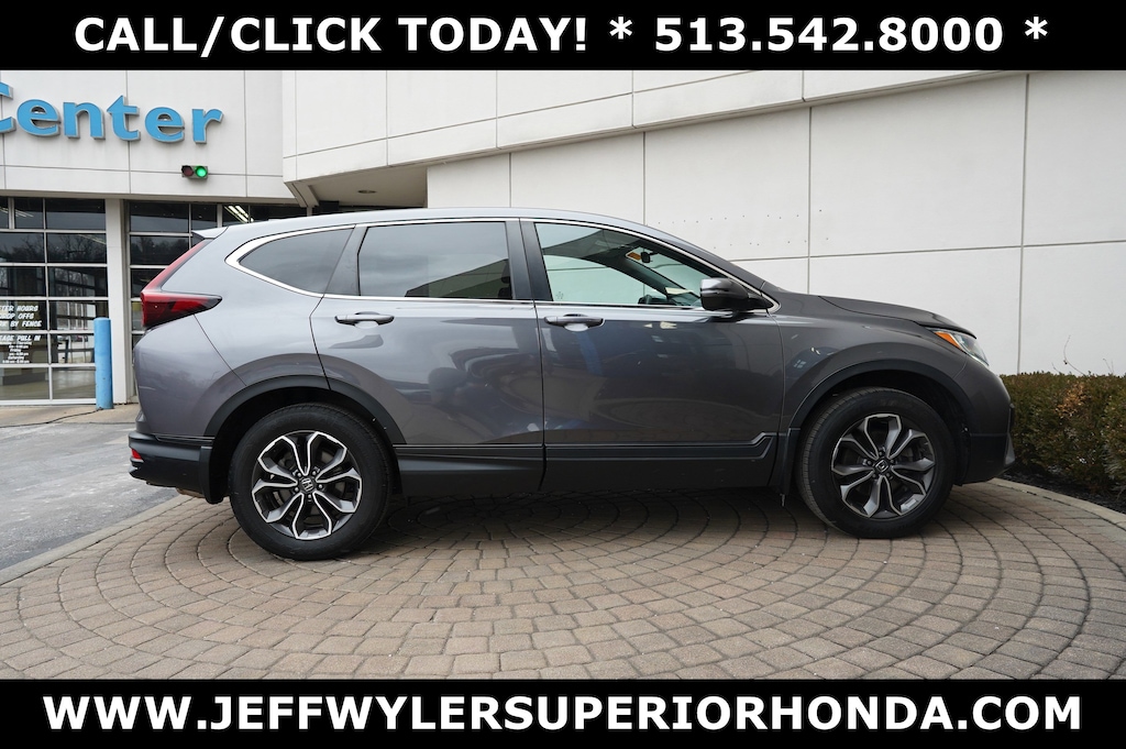 Jeff Wyler Superior Honda is very proud to offer this fantastic-looking 2021 Honda CR-V EX in Gray. BLUETOOTH, MOONROOF SUNROOF, and CLEAN CARFAX...NO ACCIDENTS CR-V EX, 4D Sport Utility, 1.5L I4 DOHC 16V, CVT, AWD, Gray, Cloth, 18" Alloy Wheels, 4-Wheel Disc Brakes, 5.64 Axle Ratio, 6 Speakers, ABS brakes, Adaptive Cruise Control: Adaptive Cruise Control (ACC) with Low-Speed Follow, Air Conditioning, Alloy wheels, AM/FM radio: SiriusXM, Apple CarPlay/Android Auto, Auto High-beam Headlights, Automatic temperature control, Blind Spot Information (BSI) System warning, Brake assist, Bumpers: body-color, Cloth Seat Trim, Compass, Delay-off headlights, Driver door bin, Driver vanity mirror, Dual front impact airbags, Dual front side impact airbags, Electronic Stability Control, Exterior Parking Cameras, Forward collision: Collision Mitigation Braking System (CMBS) + FCW mitigation, Four wheel independent suspension, Front anti-roll bar, Front Bucket Seats, Front Center Armrest, Front dual zone A/C, Front fog lights, Front reading lights, Heated door mirrors, Heated Front Bucket Seats, Heated front seats, Illuminated entry, Low tire pressure warning, Occupant sensing airbag, Outside temperature display, Overhead airbag, Overhead console, Panic alarm, Passenger door bin, Passenger vanity mirror, Power door mirrors, Power driver seat, Power moonroof, Power steering, Power windows, Radio data system, Radio: 180-Watt AM/FM/HD/SiriusXM Audio System, Rear anti-roll bar, Rear seat center armrest, Rear window defroster, Rear window wiper, Remote keyless entry, Security system, Speed control, Speed-sensing steering, Speed-Sensitive Wipers, Split folding rear seat, Spoiler, Steering wheel mounted audio controls, Tachometer, Telescoping steering wheel, Tilt steering wheel, Traction control, Trip computer, Turn signal indicator mirrors, and Variably intermittent wipers Our PRE-OWNED vehicles are put through a rigorous 167- POINT QUALITY ASSURANCE INSPECTION along with an average amount of over $1,400.00 SPENT to recondition each vehicle so we can be sure to deliver you the highest quality vehicle like you deserve! ***ONLINE PRICE DOES NOT INCLUDE WYLER FAMILY FIRST PACKAGE*** Stop by 4777 Spring Grove Ave. Road to see for yourself, or give us a call @ 283-209-1858 to schedule your test drive!Vehicle pricing includes all offers and incentives. Due to limited inventory, offers and pricing are all subject to change. Tax, Title, Tags and $387 doc fees are not included in vehicle price shown and must be paid by the purchaser. Doc fees vary by location. Financing w/approved credit. Mileage est. Based on current EPA estimates reflecting new EPA methods beginning w/ 2008 models. For comparison only. Do not compare to pre 2008 models. Actual mileage may vary based on how you drive and maintain your vehicle. Information on this site includes 3rd party data believed to be reliable, subject to change without notice. Jeff Wyler reserves the right to correct any errors and/or omissions in the compilation or presentation of this data and makes no representations express or implied to any prospective purchaser as to the vehicle's condition, specifications, history, equipment or equipment function, price or warranties. This vehicle may be subject to an open recall that has not been repaired. Please consult safercar.gov for more information on the current status. It is the responsibility of purchaser to confirm any data prior to purchase. Other than MSRP, all offers only apply to this vehicle and are subject to change. Vehicle prices are subject to change and all vehicles are subject to prior sale and may not be available when you are ready to purchase. Prices listed on any other website may not be accepted. Dealership advertises the sale of vehicles through a number of different channels and cannot always control when they are updated. Wyler? and Jeff Wyler? are registered trademarks of the Jeff Wyler Automotive Family, Inc.