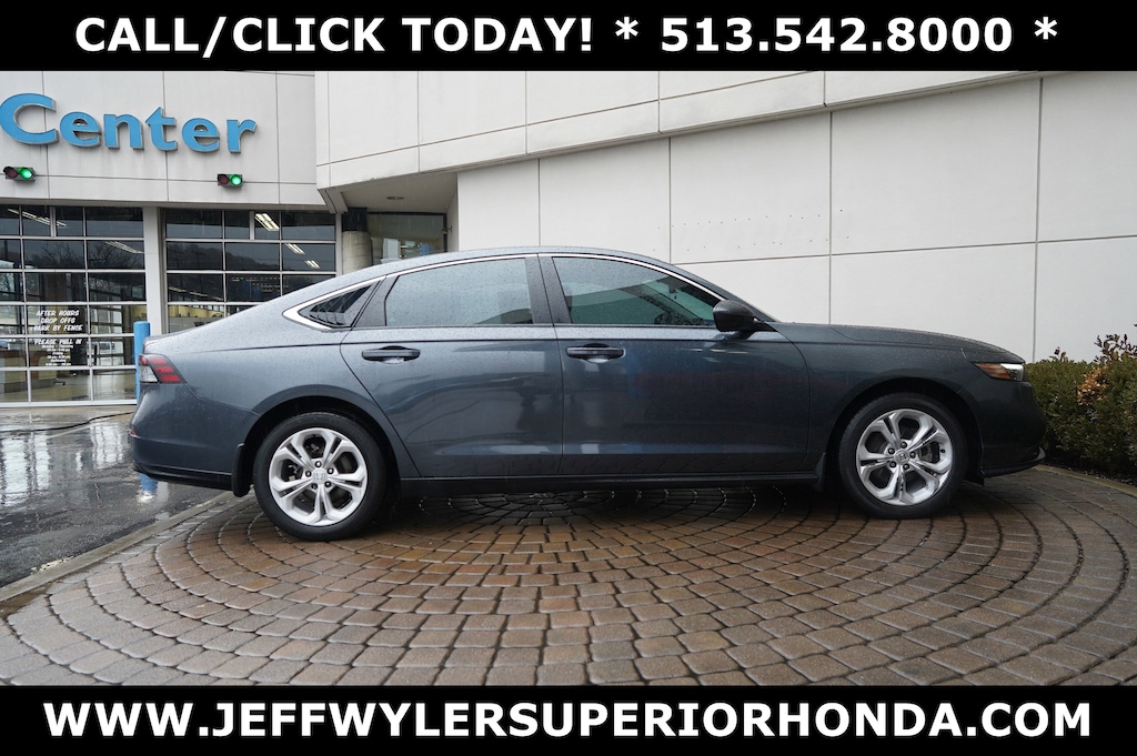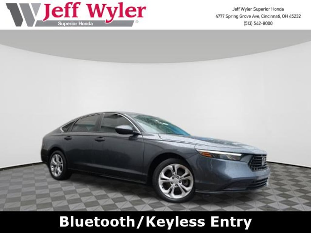 Jeff Wyler Superior Honda is excited to offer this fantastic 2025 Honda Accord LX in Gray. BLUETOOTH, CLEAN CARFAX...NO ACCIDENTS, HONDA CERTIFIED!, And ONE OWNER Accord LX, 4D Sedan, 1.5T I4 DOHC 16V Turbocharged VTEC, CVT, FWD, Gray, Black Cloth, 4 Speakers, 4-Wheel Disc Brakes, ABS brakes, Adaptive Cruise Control: Adaptive Cruise Control (ACC) with Low-Speed Follow, Air Conditioning, Alloy wheels, AM/FM radio, Apple CarPlay/Android Auto, Auto High-beam Headlights, Automatic temperature control, Brake assist, Bumpers: body-color, Compass, Delay-off headlights, Driver door bin, Driver vanity mirror, Dual front impact airbags, Dual front side impact airbags, Electronic Stability Control, Emergency communication system: HondaLink Assist, Exterior Parking Cameras, Fabric Seat Trim, Four wheel independent suspension, Front anti-roll bar, Front Bucket Seats, Front Center Armrest, Front reading lights, Fully automatic headlights, Illuminated entry, Knee airbag, Lane departure: Lane Keeping Assist System (LKAS) active, Low tire pressure warning, Occupant sensing airbag, Outside temperature display, Overhead airbag, Overhead console, Panic alarm, Passenger door bin, Passenger vanity mirror, Power door mirrors, Power steering, Power windows, Radio data system, Radio: 160-Watt Audio System, Rear anti-roll bar, Rear reading lights, Rear seat center armrest, Rear side impact airbag, Rear window defroster, Remote keyless entry, Security system, Speed control, Speed-sensing steering, Speed-Sensitive Wipers, Steering wheel mounted audio controls, Tachometer, Telescoping steering wheel, Tilt steering wheel, Traction control, Trip computer, Variably intermittent wipers, and Wheels: 17" x 7.5J Blade Silver Our PRE-OWNED vehicles are put through a rigorous 167- POINT QUALITY ASSURANCE INSPECTION along with an average amount of over $1,400.00 SPENT to recondition each vehicle so we can be sure to deliver you the highest quality vehicle like you deserve! ***ONLINE PRICE DOES NOT INCLUDE WYLER FAMILY FIRST PACKAGE*** Stop by 4777 Spring Grove Ave. Road to see for yourself, or give us a call @ 283-209-1858 to schedule your test drive!