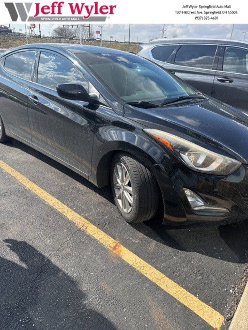 Jeff Wyler Springfield Auto Mall is proud to offer this great 2016 Hyundai Elantra SE in Phantom Black. Well equipped with: Popular Equipment Package (16" Alloy Wheels, 4.3" Touchscreen Color Audio Display, Automatic Headlamp Control, Bluetooth® Hands-Free Phone System, Cloth Insert Door Trim, Driver Blind Spot Mirror, Driver's One-Touch Auto Up Window, Dual Outside Power Mirrors, Fog Lights, Illuminated Ignition, Illuminated Vanity Mirrors w/Extensions, Rear-View Camera, Sliding Center Armrest, Solar Glass w/Windshield Shade Band, and Steering Wheel Audio Controls), 15" Steel Wheels w/Covers, 4-Wheel Disc Brakes, 6 Speakers, ABS brakes, Air Conditioning, AM/FM radio: SiriusXM, Auto-Dimming Mirror w/HomeLink, Brake assist, Bumpers: body-color, Carpeted Floor Mats, CD player, Delay-off headlights, Driver door bin, Driver vanity mirror, Dual front impact airbags, Dual front side impact airbags, Electronic Stability Control, Front anti-roll bar, Front Bucket Seats, Front Center Armrest w/Storage, Front reading lights, Front wheel independent suspension, Illuminated entry, Low tire pressure warning, Occupant sensing airbag, Option Group 02, Outside temperature display, Overhead airbag, Overhead console, Panic alarm, Passenger door bin, Passenger vanity mirror, Power door mirrors, Power steering, Power windows, Premium Cloth Seat Trim, Radio: AM/FM/SiriusXM/CD/MP3 Audio System, Rear anti-roll bar, Rear seat center armrest, Rear window defroster, Remote keyless entry, Security system, Speed control, Speed-sensing steering, Split folding rear seat, Tachometer, Tilt steering wheel, Traction control, Trip computer, and Variably intermittent wipers. Awards: * 2016 KBB.com 10 Best Used Compact Cars Under $15,000 * 2016 KBB.com Best Buy Awards Finalist * 2016 KBB.com 5-Year Cost to Own Awards Ask about available certifications. Used vehicles 10 years of age or newer with less than 100,000 miles are eligible for the Wyler Assurance Program, but eligible vehicles must pass our reconditioning process and multi-point inspection. Provided the vehicle passes inspection, vehicles will be eligible for the 6 month/6,000 mile limited warranty. The 6 month/6,000 mile limited warranty is NOT available on AS-IS vehicles, wholesale vehicles, lease buyback/pass-thru vehicles or un-inspected vehicles. Note that this program can also apply to vehicles where the remaining factory coverage is less than 6 months or 6,000 miles. Please check the Federal Trade Commission (FTC) Buyers guide on the vehicle for full details as to whether or not warranty coverage may apply. Contact Dealer for additional details. The Wyler Assurance 6 month/6,000 Mile limited warranty ends 6 months from the date of the Retail Purchase Agreement (BUYERS ORDER) or when the vehicle's odometer registers 6,000 additional miles to the mileage listed on the BUYERS ORDER, whichever comes first. Your Deductible - The warranty holder on your contract pays the first $100 of each covered repair.