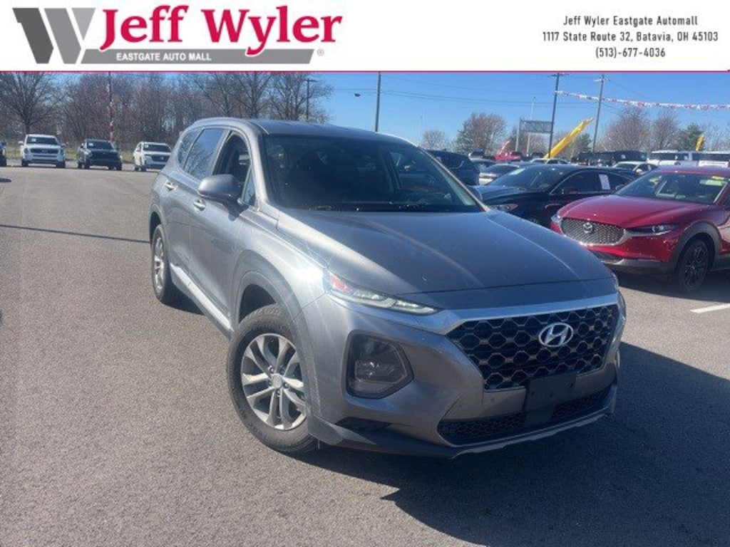Jeff Wyler Eastgate Auto Mall is proud to offer this terrific 2019 Hyundai Santa Fe SE in Machine Gray. Well equipped with: Option Group 01, 17" x 7.0J Alloy Wheels, 4-Wheel Disc Brakes, 6 Speakers, ABS brakes, Air Conditioning, Alloy wheels, AM/FM radio, Apple CarPlay & Android Auto, Auto High-beam Headlights, Axle Ratio 3.798, Brake assist, Bumpers: body-color, Cargo Cover, Cargo Net, Carpeted Floor Mats, Delay-off headlights, Driver door bin, Driver vanity mirror, Dual front impact airbags, Dual front side impact airbags, Electronic Stability Control, Exterior Parking Camera Rear, Four wheel independent suspension, Front anti-roll bar, Front Bucket Seats, Front Center Armrest, Front reading lights, Fully automatic headlights, Illuminated entry, Low tire pressure warning, Occupant sensing airbag, Outside temperature display, Overhead airbag, Overhead console, Panic alarm, Passenger door bin, Passenger vanity mirror, Power door mirrors, Power steering, Power windows, Radio: AM/FM/MP3 Display Audio, Rear anti-roll bar, Rear seat center armrest, Rear window defroster, Rear window wiper, Remote keyless entry, Security system, Speed control, Speed-sensing steering, Split folding rear seat, Spoiler, Stain-Resistant Cloth Seating Surfaces, Steering wheel mounted audio controls, Tachometer, Telescoping steering wheel, Tilt steering wheel, Traction control, Trip computer, and Variably intermittent wipers. Clean CARFAX. Awards: * JD Power Initial Quality Study (IQS) * JD Power Initial Quality Study (IQS), Vehicle Dependability Study (VDS) Ask about available certifications. Used vehicles 10 years of age or newer with less than 100,000 miles are eligible for the Wyler Assurance Program, but eligible vehicles must pass our reconditioning process and multi-point inspection. Provided the vehicle passes inspection, vehicles will be eligible for the 6 month/6,000 mile limited warranty. The 6 month/6,000 mile limited warranty is NOT available on AS-IS vehicles, wholesale vehicles, lease buyback/pass-thru vehicles or un-inspected vehicles. Note that this program can also apply to vehicles where the remaining factory coverage is less than 6 months or 6,000 miles. Please check the Federal Trade Commission (FTC) Buyers guide on the vehicle for full details as to whether or not warranty coverage may apply. Contact Dealer for additional details. The Wyler Assurance 6 month/6,000 Mile limited warranty ends 6 months from the date of the Retail Purchase Agreement (BUYERS ORDER) or when the vehicle's odometer registers 6,000 additional miles to the mileage listed on the BUYERS ORDER, whichever comes first. Your Deductible - The warranty holder on your contract pays the first $100 of each covered repair.