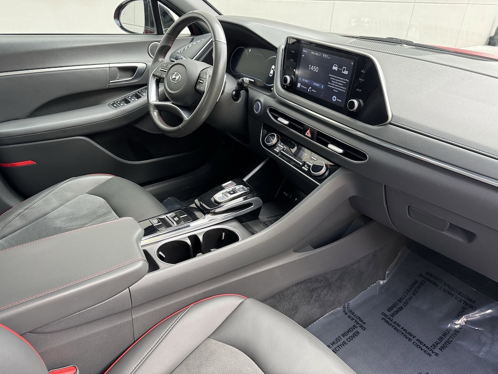 Jeff Wyler Kia of Colerain is excited to offer this fantastic-looking 2021 Hyundai Sonata SEL Plus in Calypso Red. Option Group 01, 4-Wheel Disc Brakes, 6 Speakers, ABS brakes, Air Conditioning, Alloy wheels, AM/FM radio: SiriusXM, Apple CarPlay & Android Auto, Auto High-beam Headlights, Auto-dimming Rear-View mirror, Automatic temperature control, Brake assist, Bumpers: body-color, Cargo Net, Carpeted Floor Mats, Delay-off headlights, Dinamica Suede/Leatherette Seating Surfaces, Driver door bin, Driver vanity mirror, Dual front impact airbags, Dual front side impact airbags, Electronic Stability Control, Emergency communication system: Blue Link Connected Car Service (3-year complimentary subscription), Exterior Parking Camera Rear, Four wheel independent suspension, Front anti-roll bar, Front Bucket Seats, Front Center Armrest, Front dual zone A/C, Front reading lights, Fully automatic headlights, Garage door transmitter: HomeLink, Heated door mirrors, Heated Front Bucket Seats, Heated front seats, Illuminated entry, Knee airbag, Low tire pressure warning, Occupant sensing airbag, Outside temperature display, Overhead airbag, Overhead console, Panic alarm, Passenger door bin, Passenger vanity mirror, Power door mirrors, Power driver seat, Power steering, Power windows, Radio data system, Radio: AM/FM/MP3/HD/SiriusXM Display Audio, Rear anti-roll bar, Rear Bumper Applique, Rear seat center armrest, Rear side impact airbag, Rear window defroster, Remote keyless entry, Reversible Cargo Tray, Security system, Speed control, Speed-sensing steering, Speed-Sensitive Wipers, Split folding rear seat, Steering wheel mounted audio controls, Tachometer, Telescoping steering wheel, Tilt steering wheel, Traction control, Trip computer, Turn signal indicator mirrors, Variably intermittent wipers, Wheel Locks, Wheels: 19 x 8.0J Aluminum Alloy, and Wireless Device Charging Our PRE-OWNED vehicles are put through a rigorous 167- POINT QUALITY ASSURANCE INSPECTION along with an average amount of over $1,400.00 SPENT to recondition each vehicle so we can be sure to deliver you the highest quality vehicle like you deserve! ***ONLINE PRICE DOES NOT INCLUDE WYLER FAMILY FIRST PACKAGE***