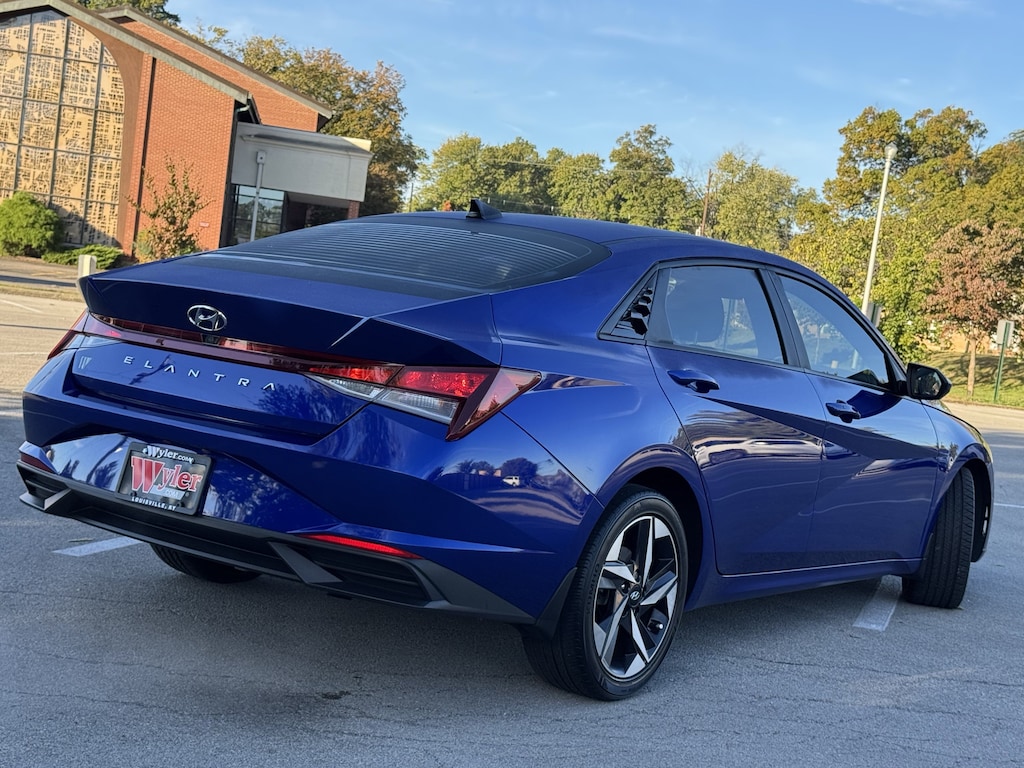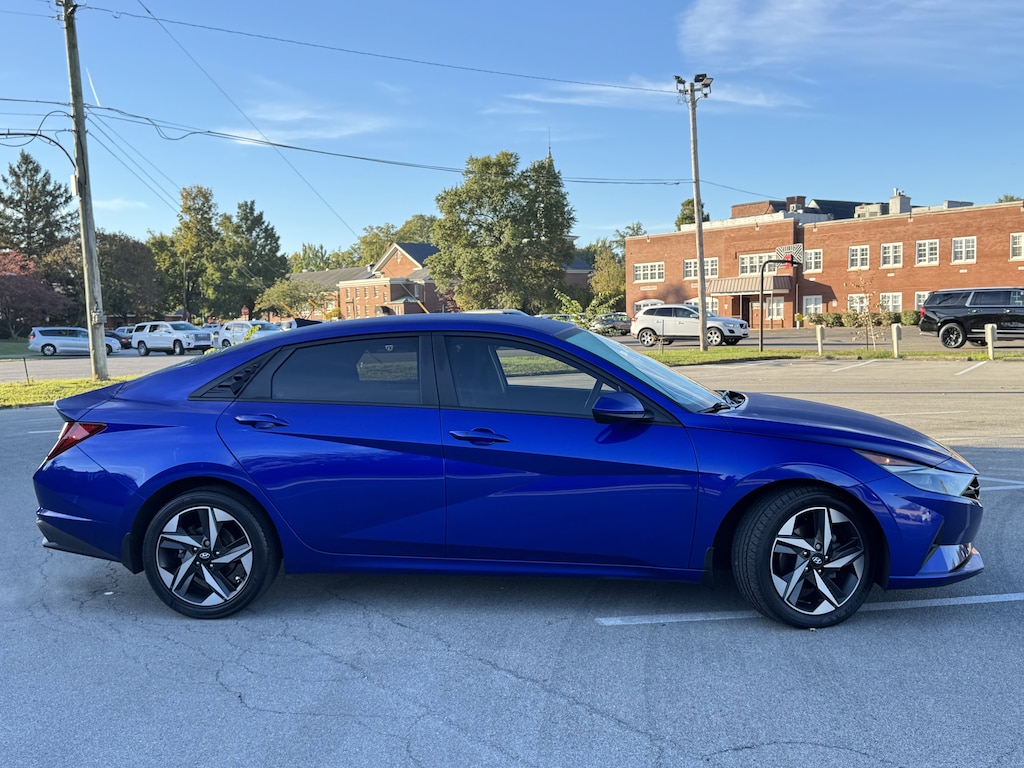 Jeff Wyler Nissan of Louisville is excited to offer this beautiful-looking 2023 Hyundai Elantra SEL in Intense Blue. ** HOME DELIVERY OPTIONS! ** Convenience Package (2nd Row USB Charge Port, Electronic Parking Brake, Forward Collision Avoidance Assist, Full 10.25" LCD TFT Cluster, Heated Front Seats, Heated Outside Mirrors, Leather-Wrapped Steering Wheel, LED Interior Lights, Option Group 02, Radio: AM/FM/HD/SiriusXM Audio System, Smart Cruise Control w/Stop & Go, Wheels: 17" x 7.0J Machine Finish Alloy, and Wireless Charging Pad), 16" x 6.5J Alloy Wheels, 4-Wheel Disc Brakes, 6 Speakers, ABS brakes, Air Conditioning, Alloy wheels, AM/FM radio: SiriusXM, Apple CarPlay & Android Auto, Auto High-beam Headlights, Automatic temperature control, Brake assist, Bumpers: body-color, Carpeted Floor Mats, Cloth Seat Trim, Delay-off headlights, Driver door bin, Driver vanity mirror, Dual front impact airbags, Dual front side impact airbags, Electronic Stability Control, Emergency communication system: Blue Link Connected Car Service (3-year complimentary subscription), Exterior Parking Camera Rear, First Aid Kit, Front anti-roll bar, Front Bucket Seats, Front Center Armrest, Front dual zone A/C, Front reading lights, Front wheel independent suspension, Fully automatic headlights, Illuminated entry, Low tire pressure warning, Mudguards, Occupant sensing airbag, Outside temperature display, Overhead airbag, Overhead console, Panic alarm, Passenger door bin, Passenger vanity mirror, Power door mirrors, Power steering, Power windows, Radio: AM/FM/HD/SiriusXM Display Audio, Rear Bumper Applique, Rear window defroster, Remote keyless entry, Security system, Speed control, Speed-sensing steering, Steering wheel mounted audio controls, Tachometer, Telescoping steering wheel, Tilt steering wheel, Traction control, Trip computer, and Variably intermittent wipers Our PRE-OWNED vehicles are put through a rigorous 167- POINT QUALITY ASSURANCE INSPECTION along with an average amount of over $1,400.00 SPENT to recondition each vehicle so we can be sure to deliver you the highest quality vehicle like you deserve! ***ONLINE PRICE DOES NOT INCLUDE WYLER FAMILY FIRST PACKAGE*** Stop by 4136 Shelbyville Road to see for yourself, or give us a call @ 502-897-3151 to schedule your test drive!